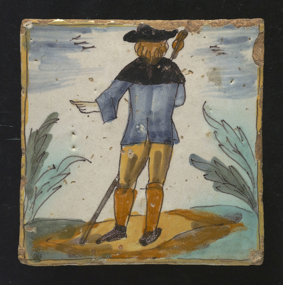 Tegel van keramiek, tinglazuur, voorstellende een la...