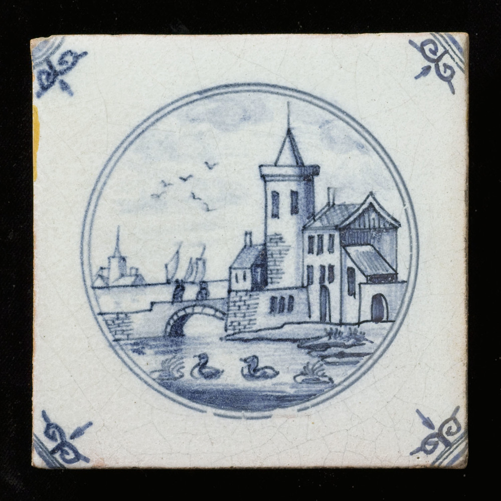 Tegel van keramiek met tinglazuur, voorstellende: so...
