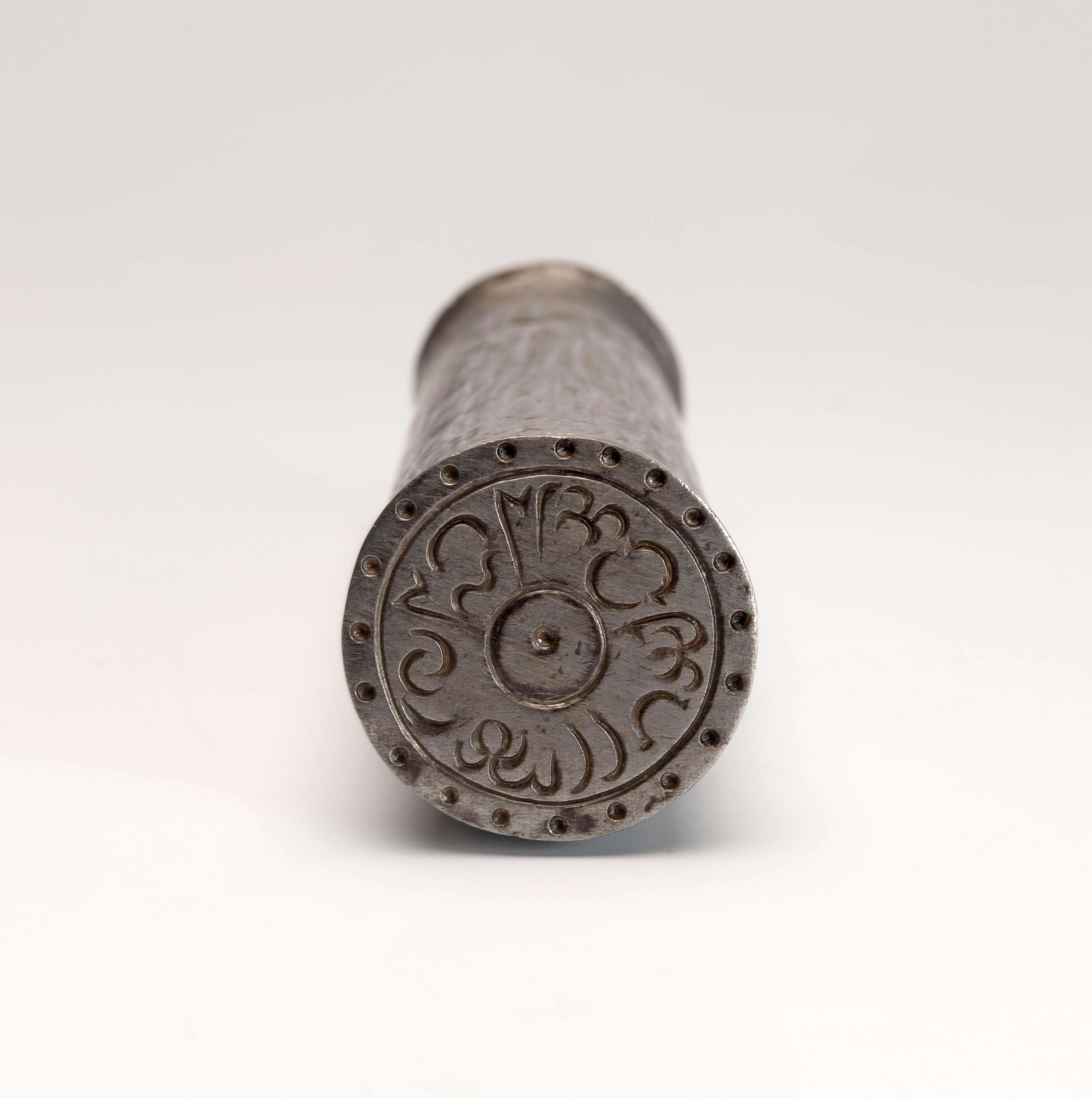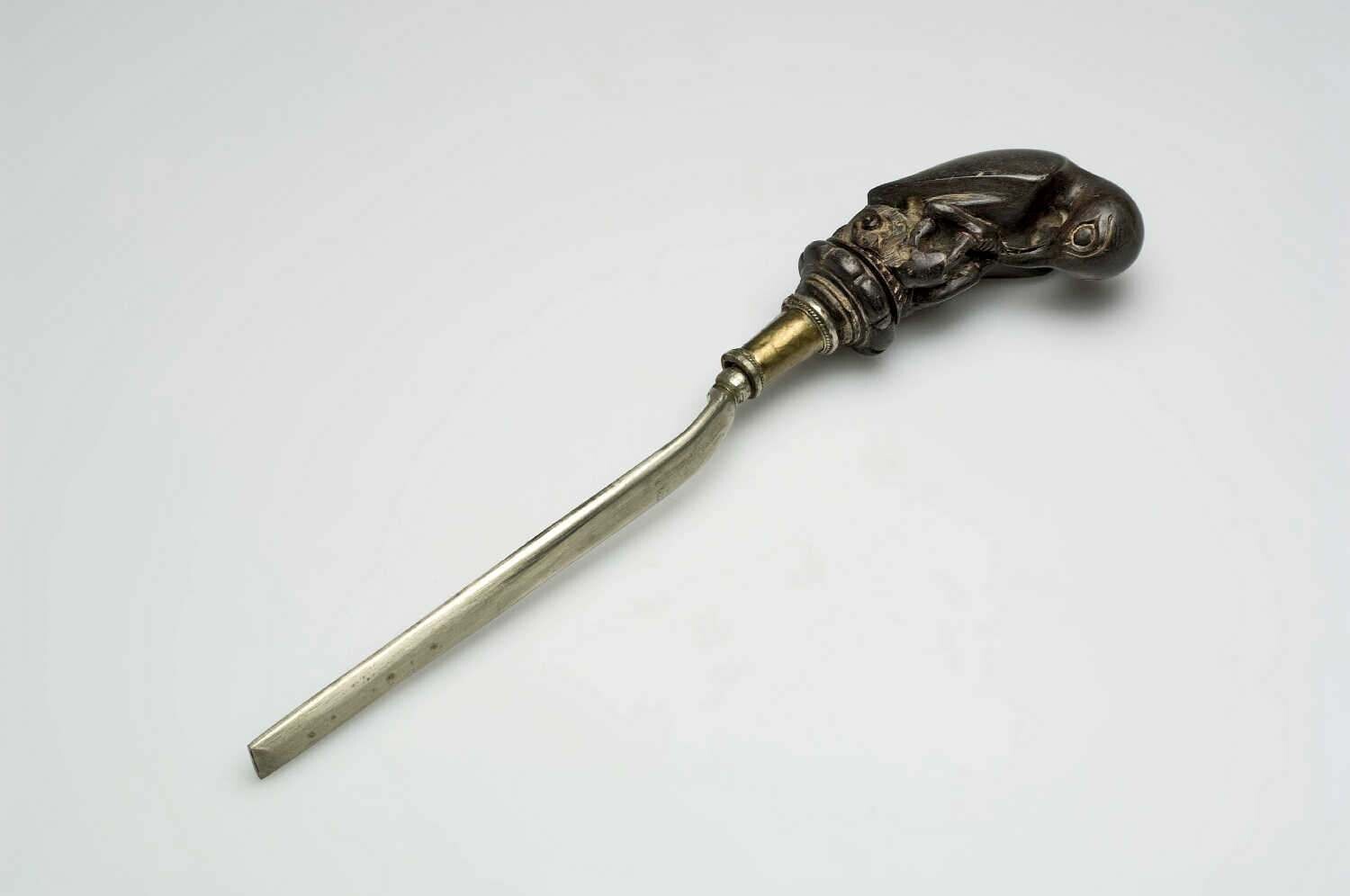 Sirihstamper met vogelfiguur in hoornen koker