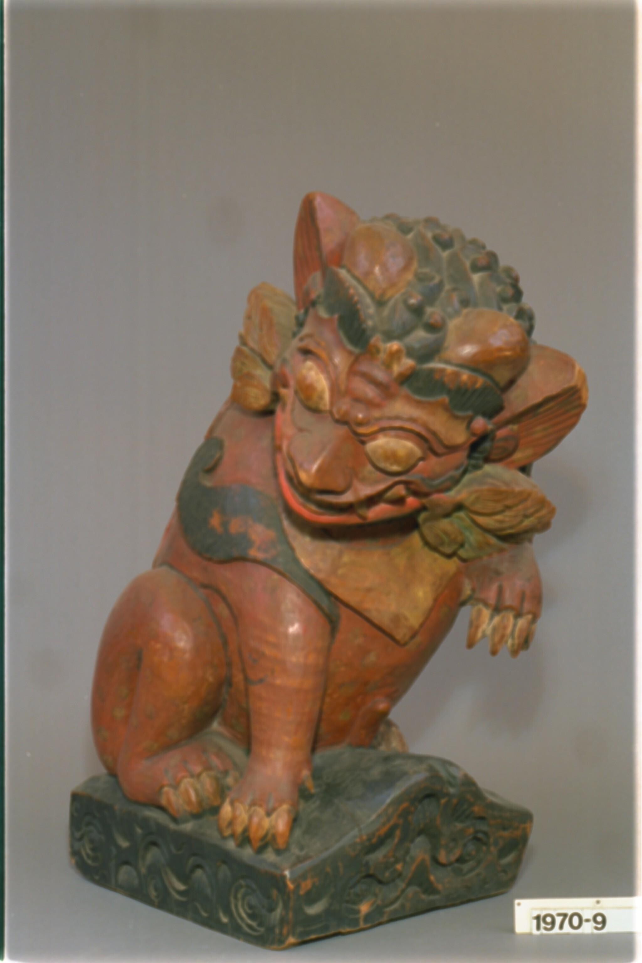 Houten beeld van de gevleugelde leeuw Singha