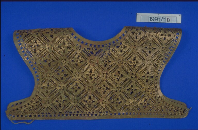 Borstbedekking van verguld leer behorend bij een dan...