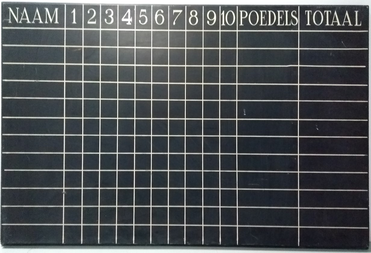 Scorebord bij de kegelbaan van Societeit de Witte