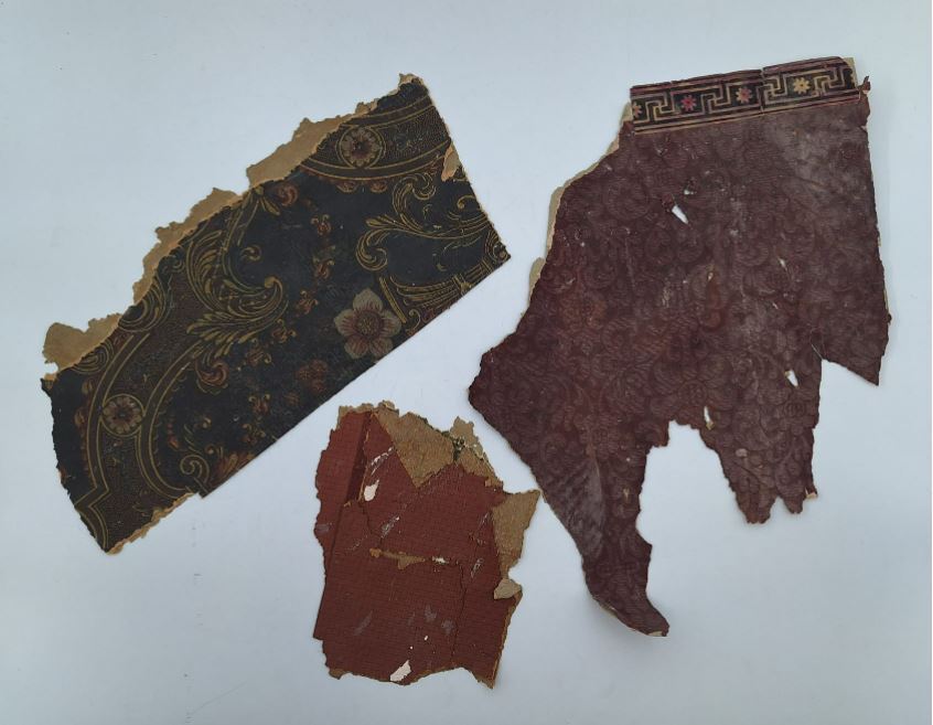 Drie delen van het originele behang van de Sint Seba...