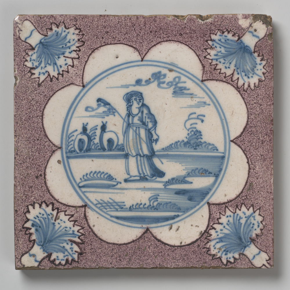Tegel van keramiek, tinglazuur, voorstellende een ze...