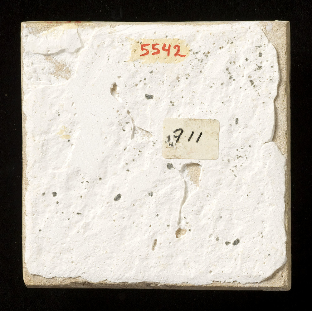 Tegel van keramiek, tinglazuur, waarschijnlijk gemaa...