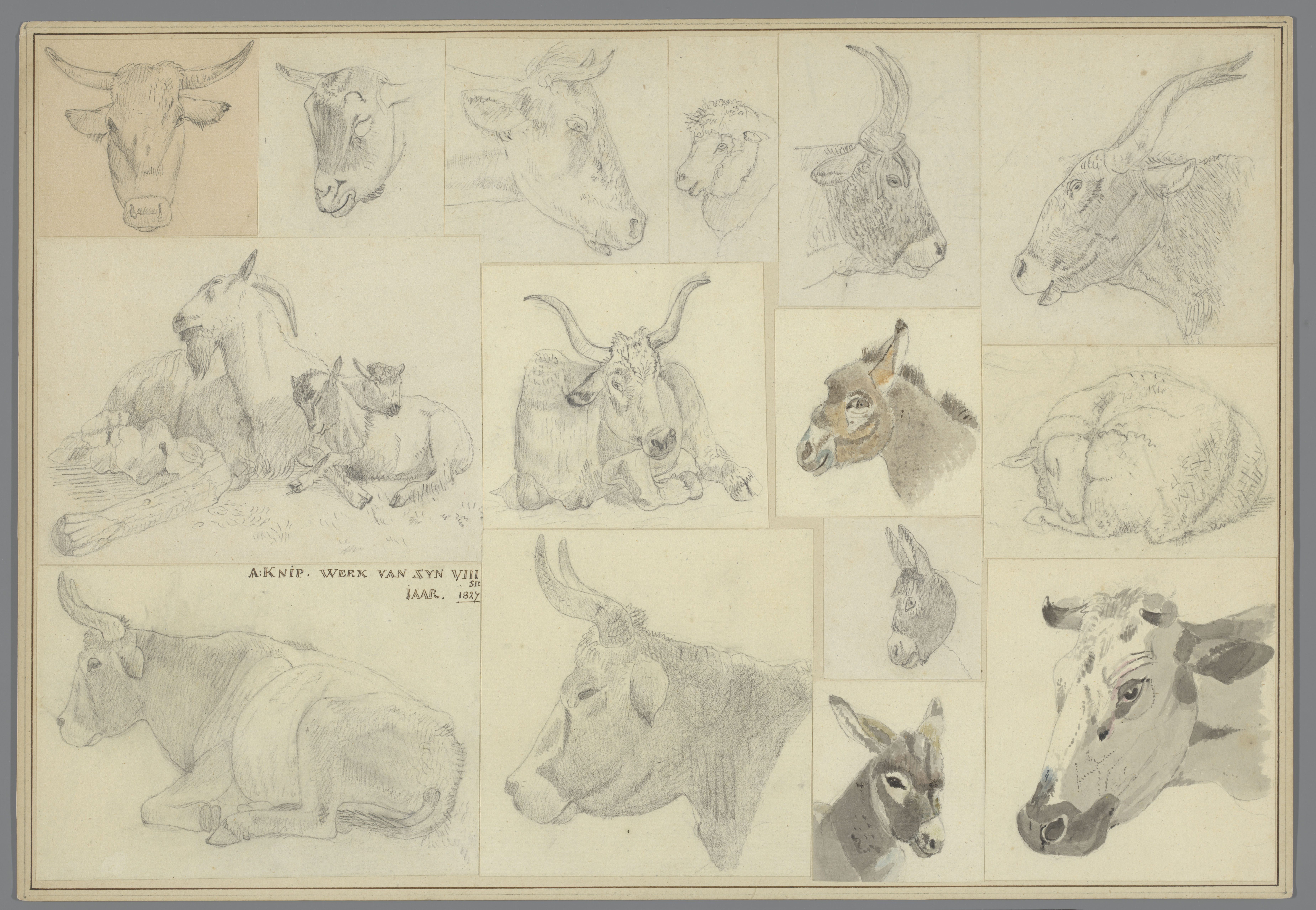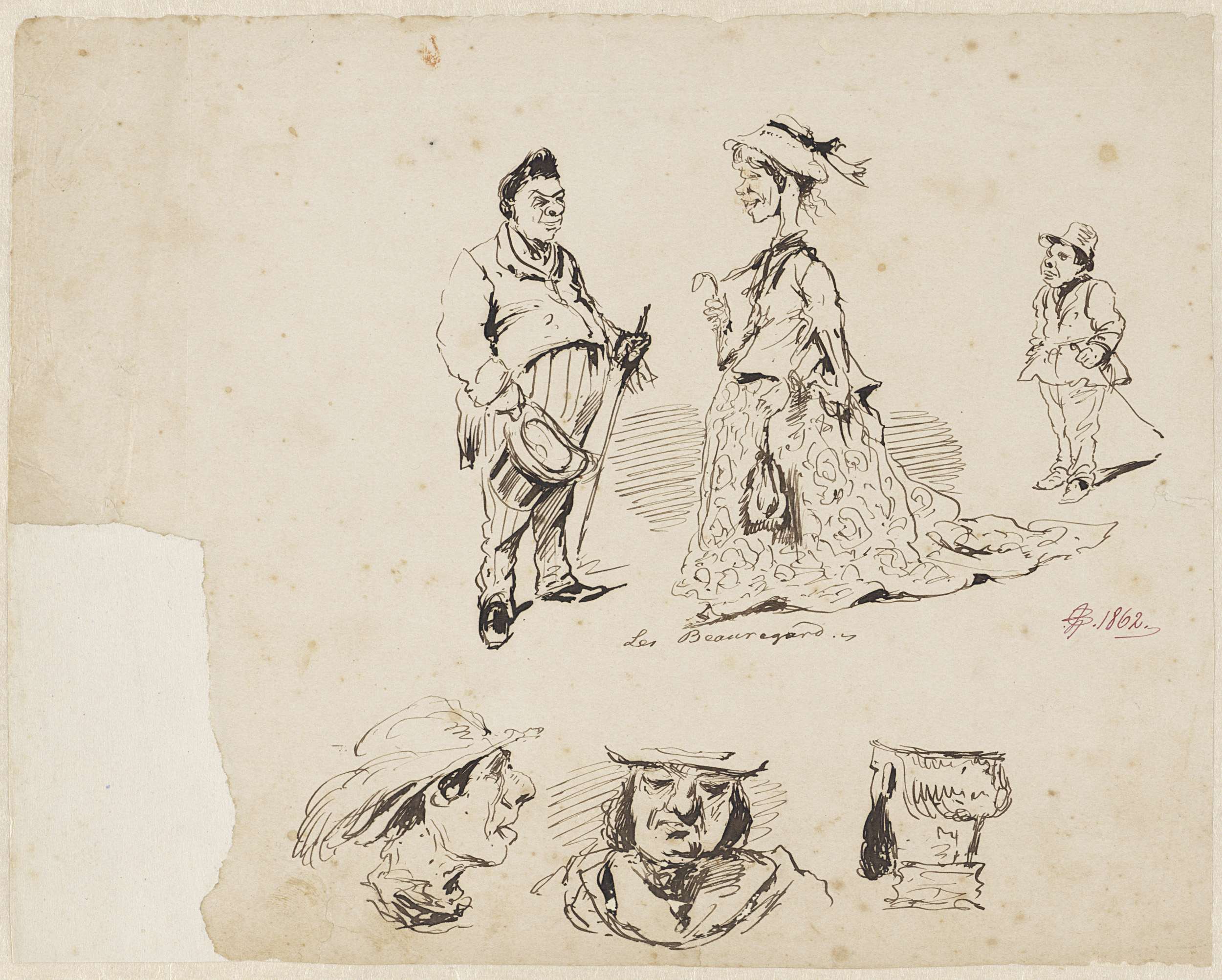 Studieblad met naakte vrouwen, kinderen en hoofden