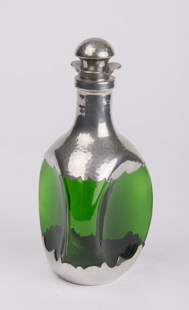 Karaf van glas en nieuw tin, vervaardigd door Metaal...