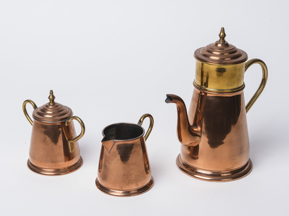 koffieservies van koper, vervaardigd door Metaalware...