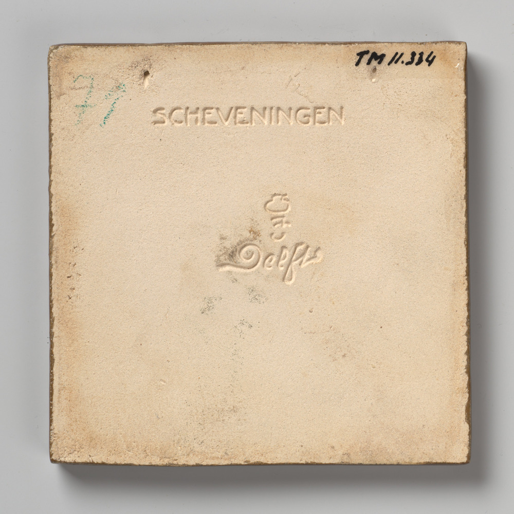 tegel van aardewerk met tinglazuur, voorstellende: z...