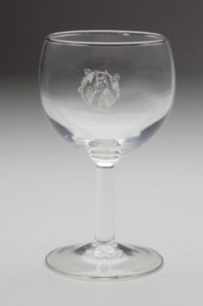 wijnglas. Platte ronde voet, rechte onbewerkte schac...