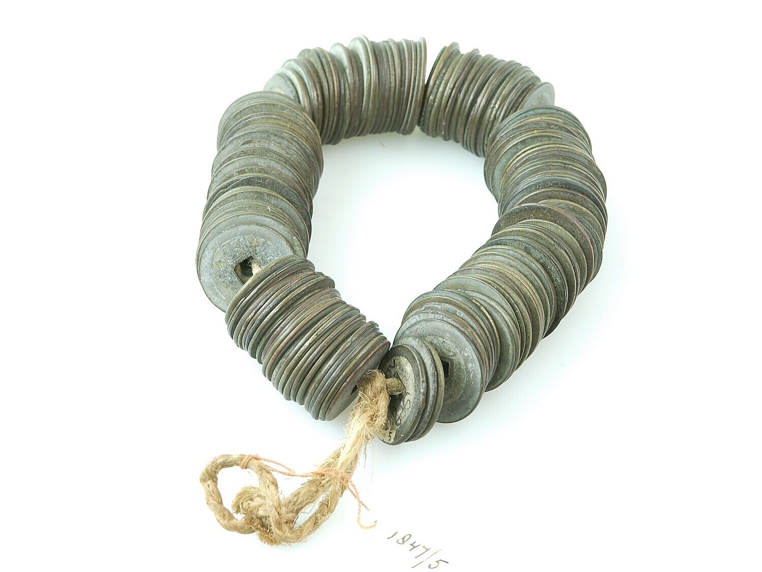 187 Chinese munten op een snoer geregen
