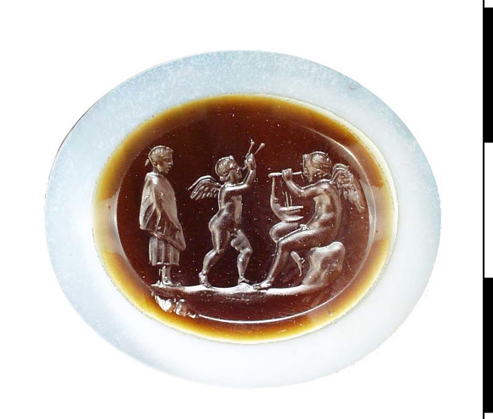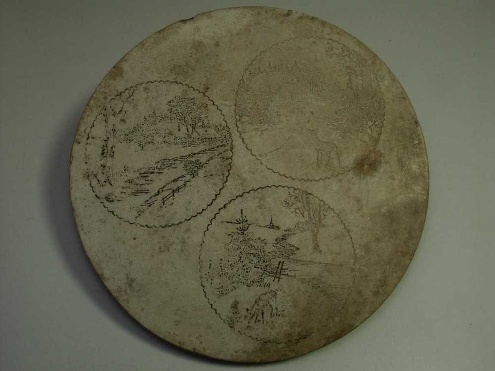 Stuifvorm van gips met 3 figuren: boerderij met beek...