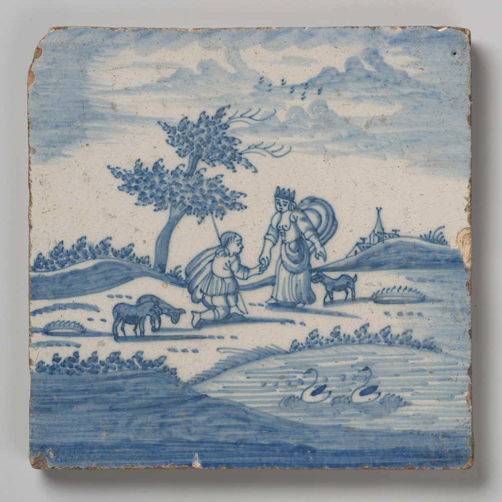 tegel van aardewerk met tinglazuur, voorstellende: h...