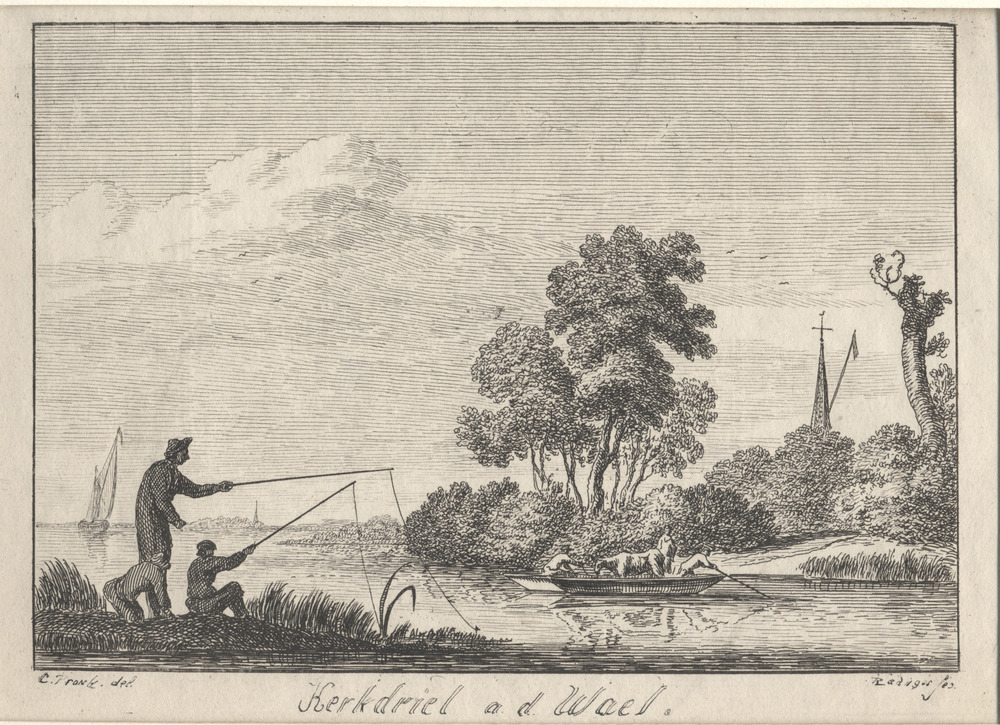 Gezicht op de rivier de Waal nabij Kerkdriel. Koperg...