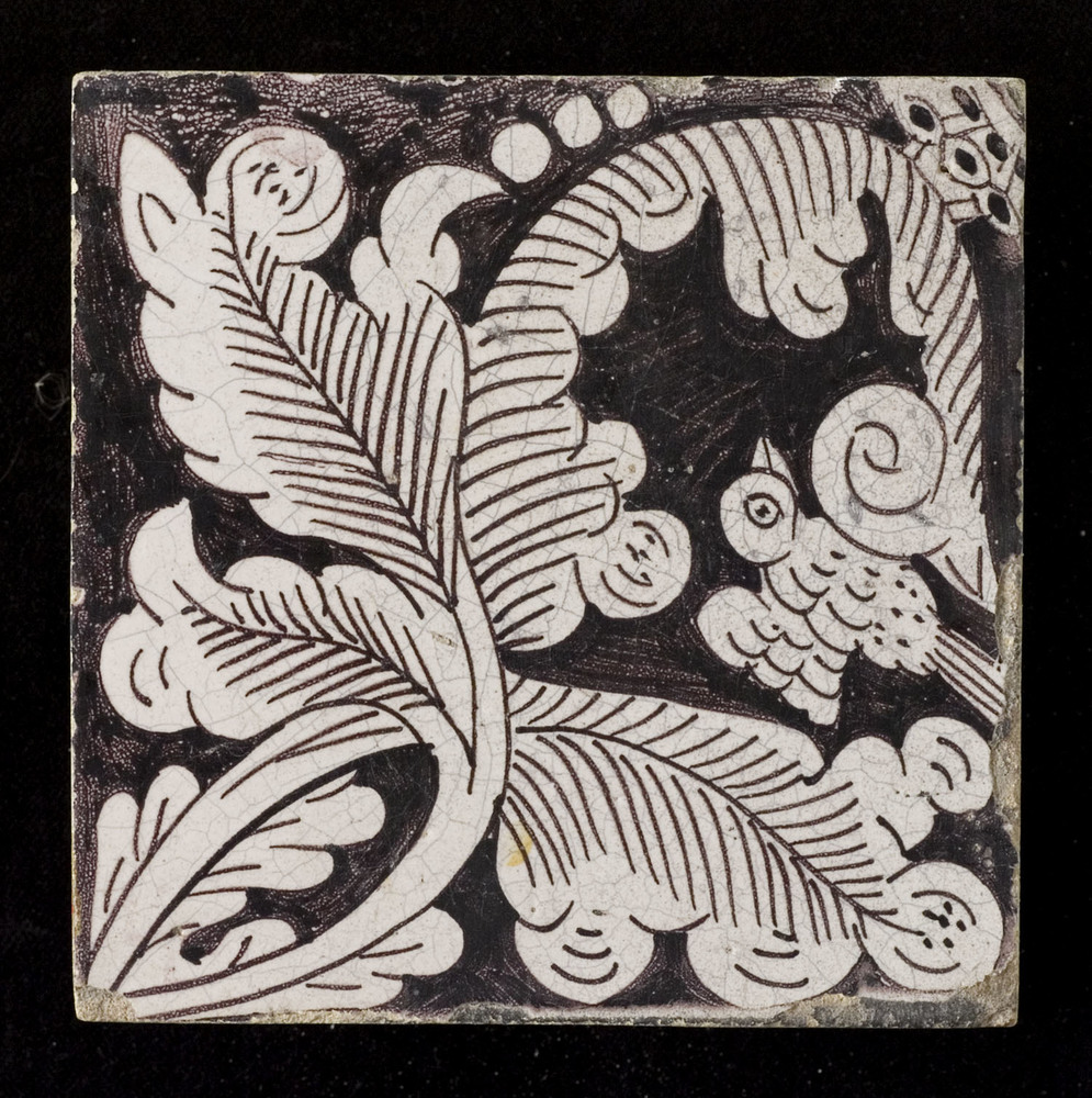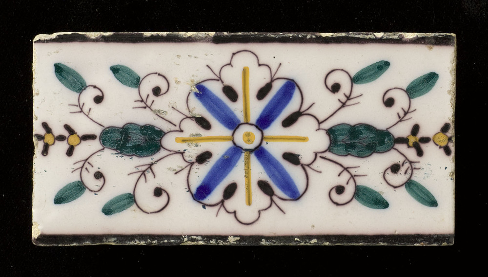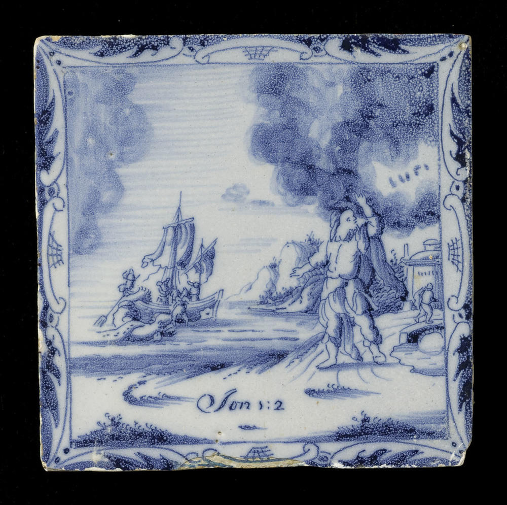 Tegel van keramiek met tinglazuur, voorstellende: or...