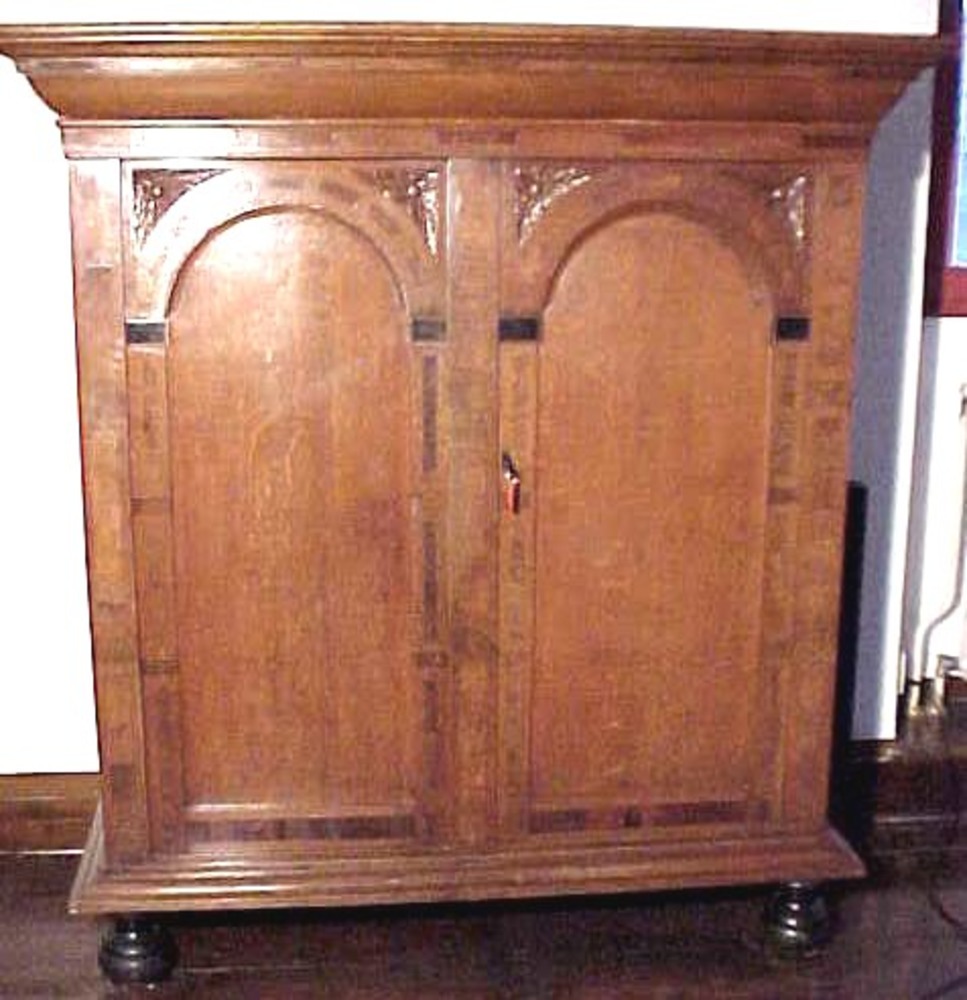 Toogkast in bruine kleur. Geprofileerde plintlijst. ...