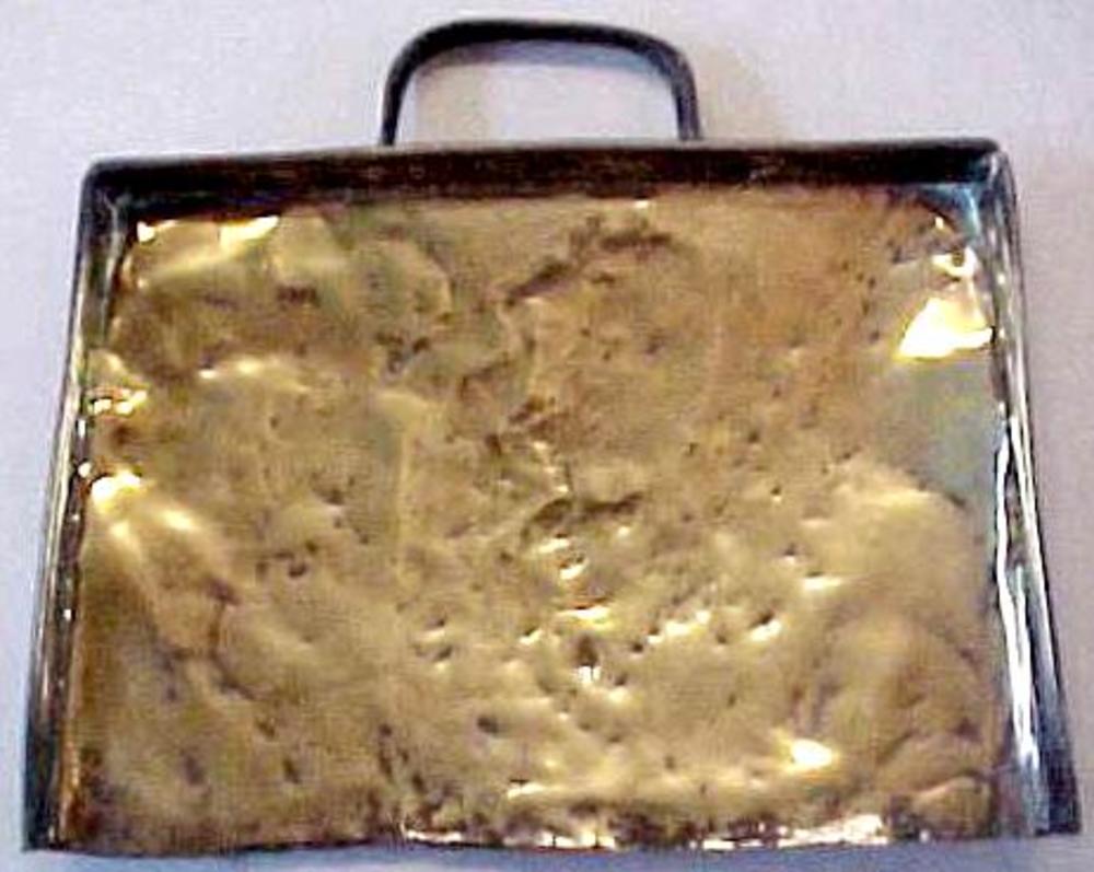 stofblik. Trapezevormig koperen model met aan drie z...