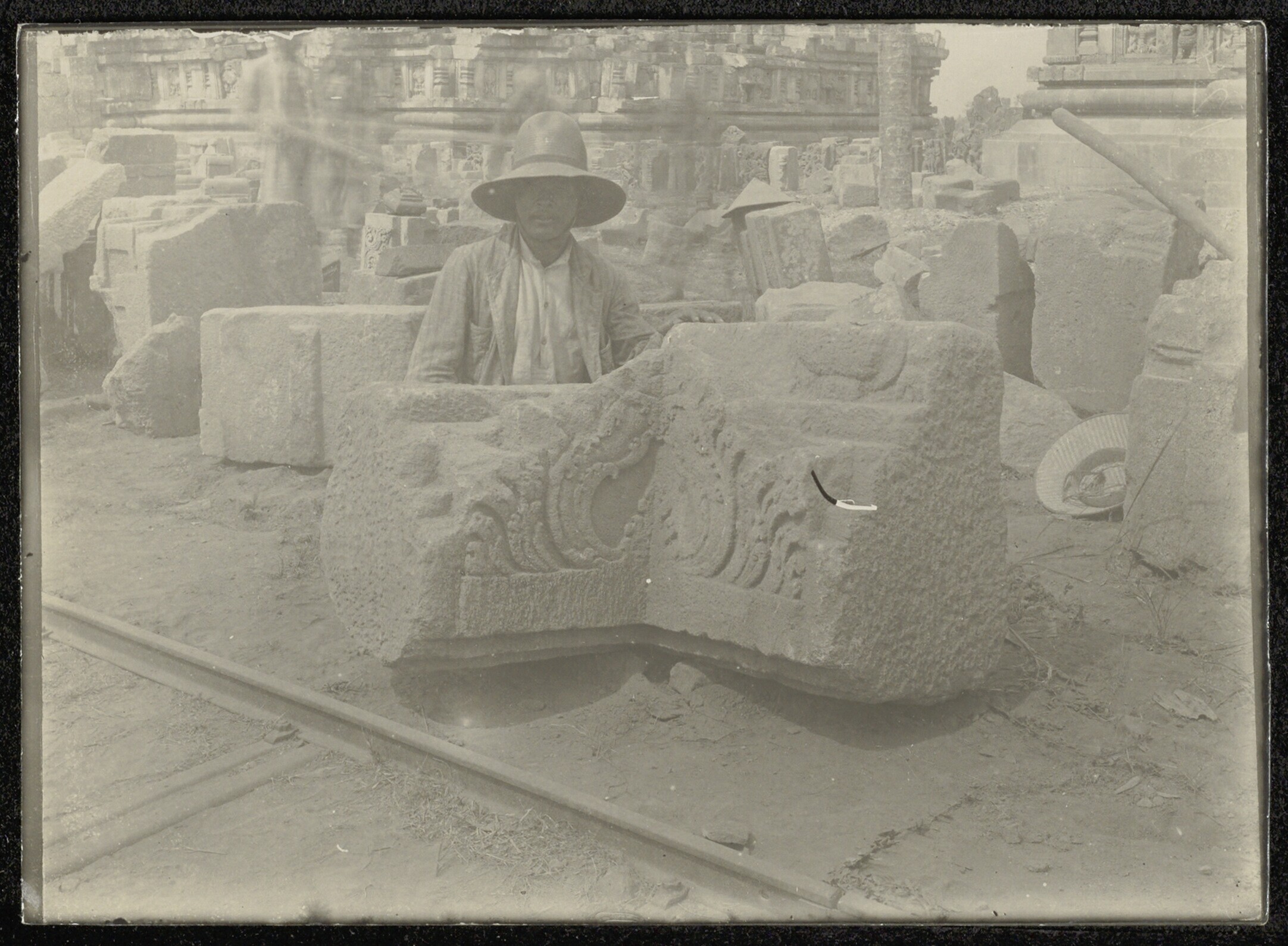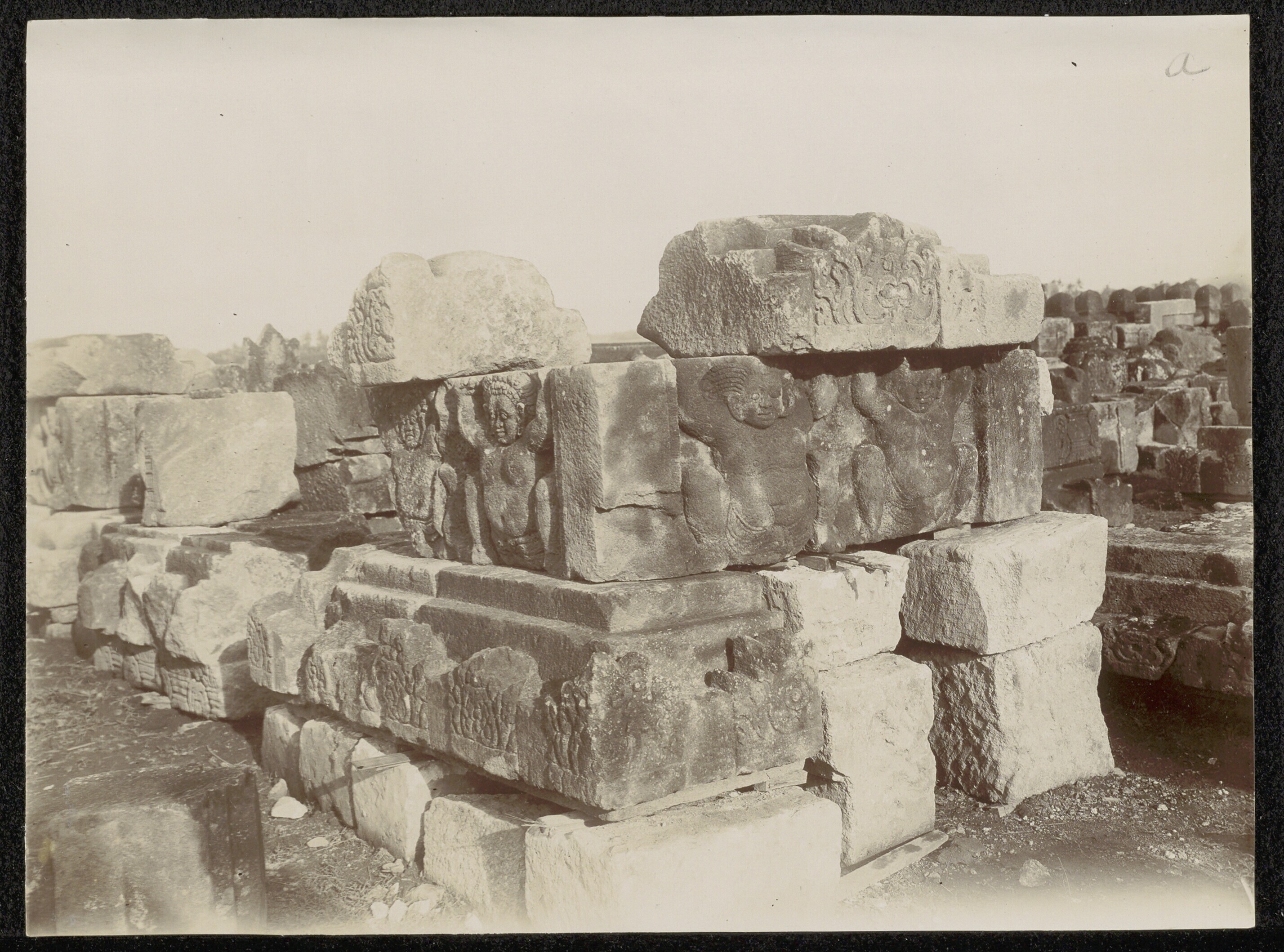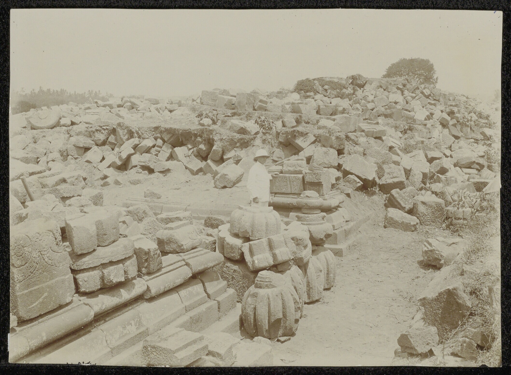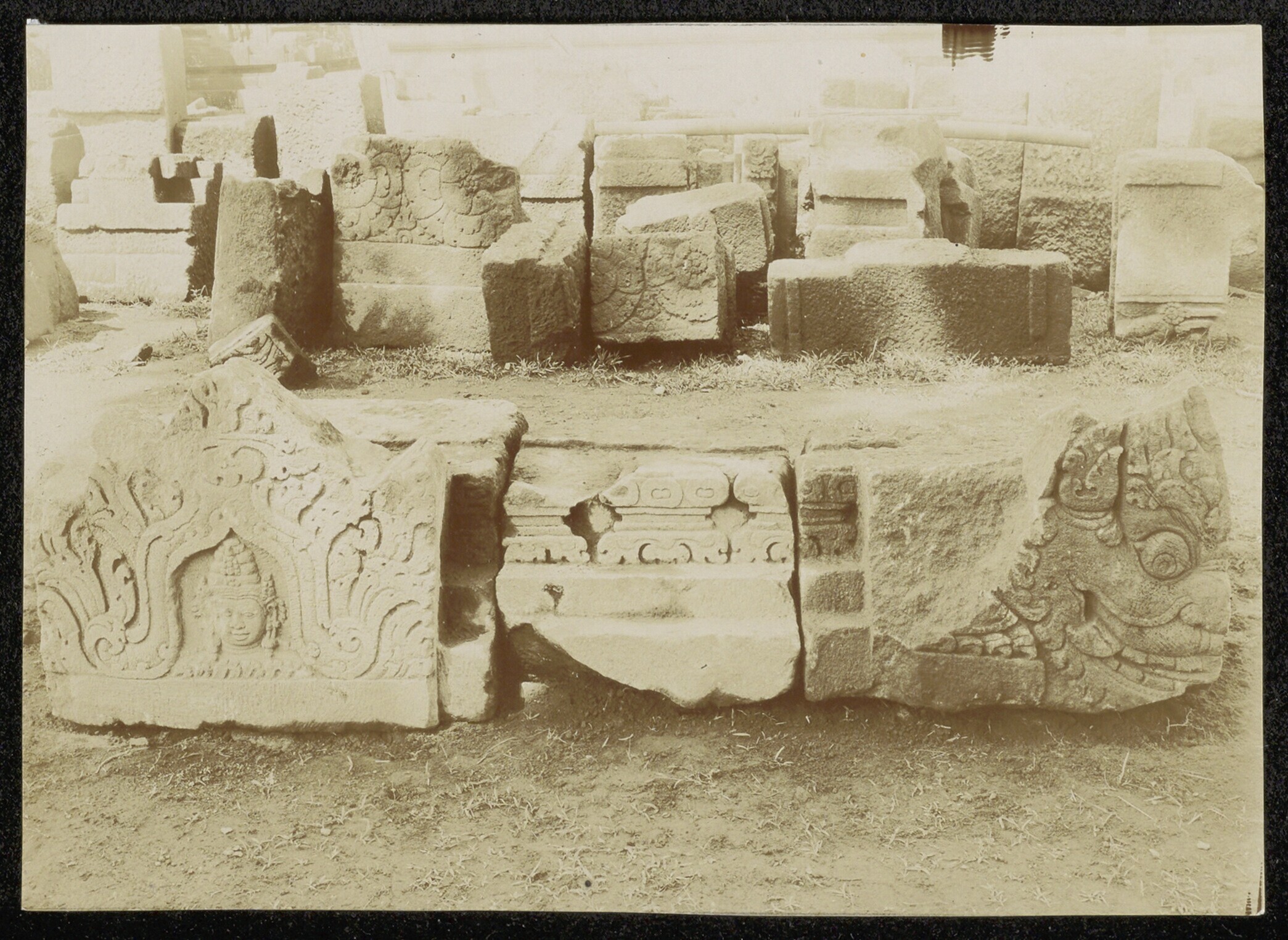 Foto uit een doos met beelden van Candi Prambanan
