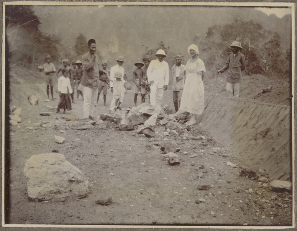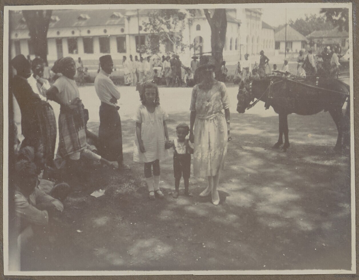 Een Europese man, vrouw en kind en enkele Javaanse m...