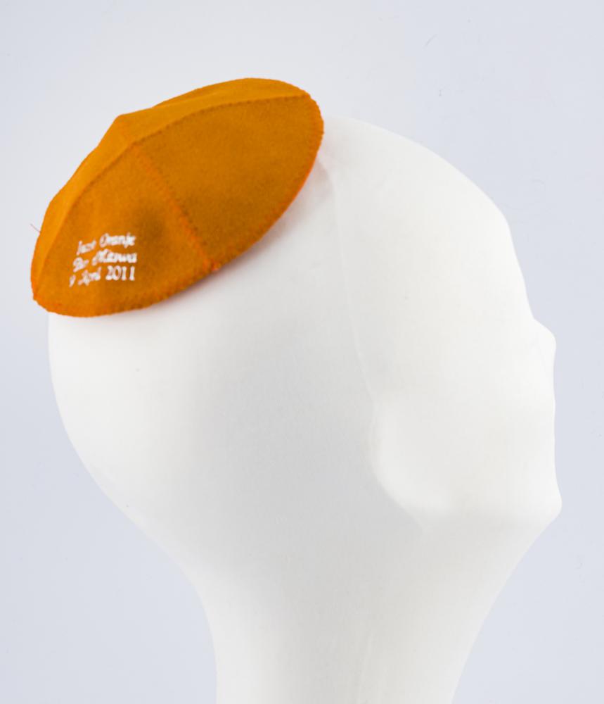 Oranje suede keppel, tgv Bar Mitzwa van Jacob Oranje