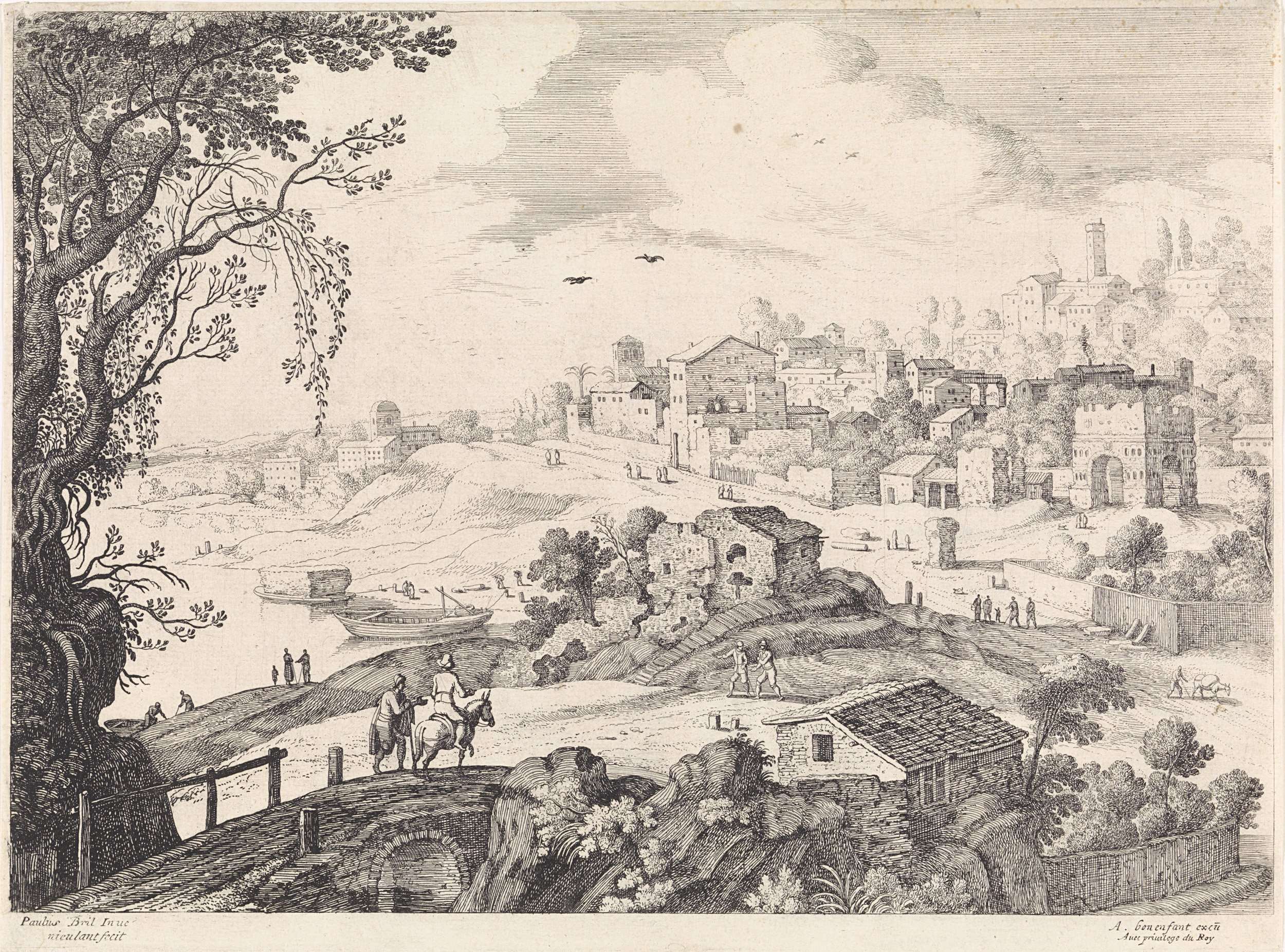 Italiaans landschap met een stad
