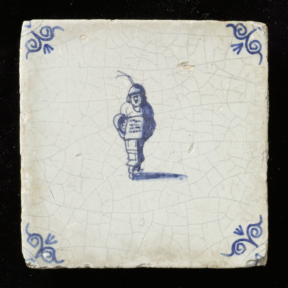 Tegel in tinglazuur, voorstellende figuur, ca. 1650-...