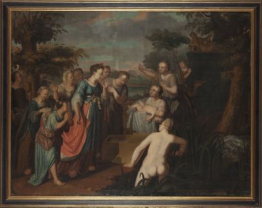 voorstelling van Mozes gered uit de Nijl door vrouw ...