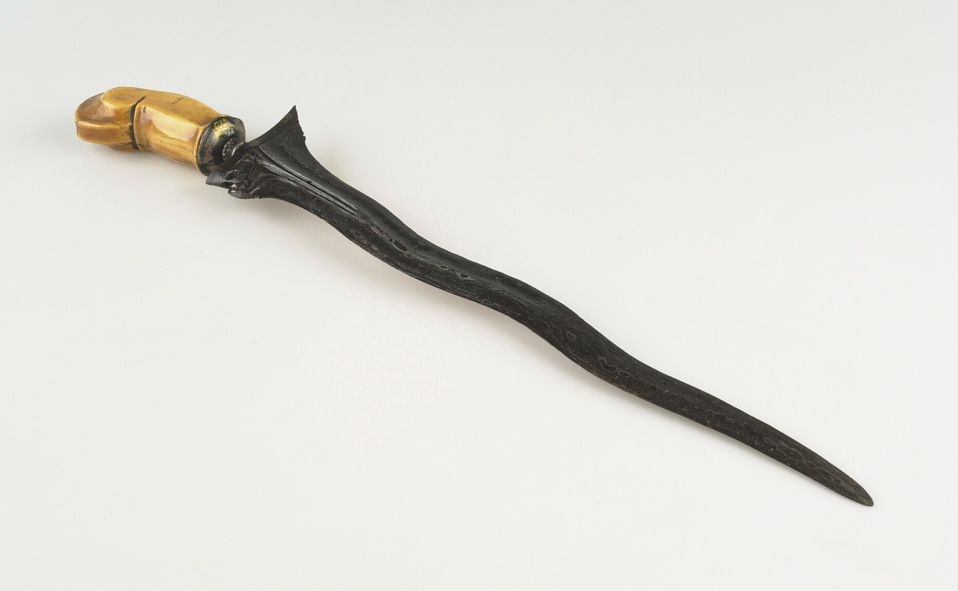 Staatsiekris met bewerkt ijzeren lemmet en ivoren ha...