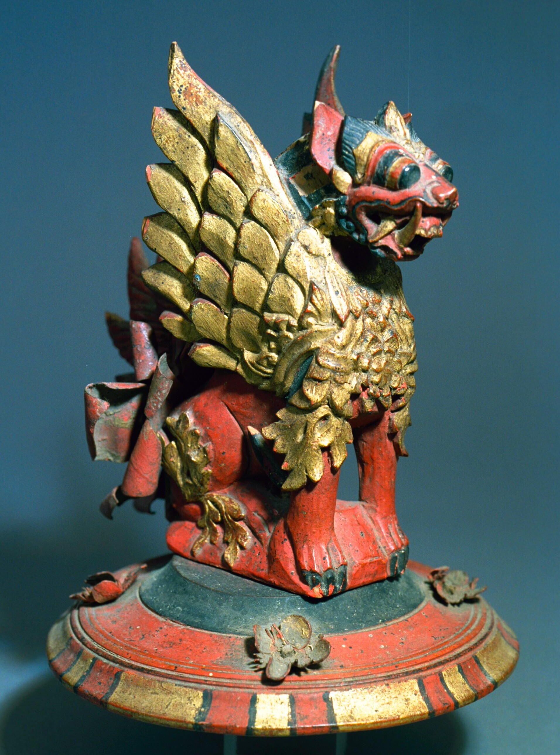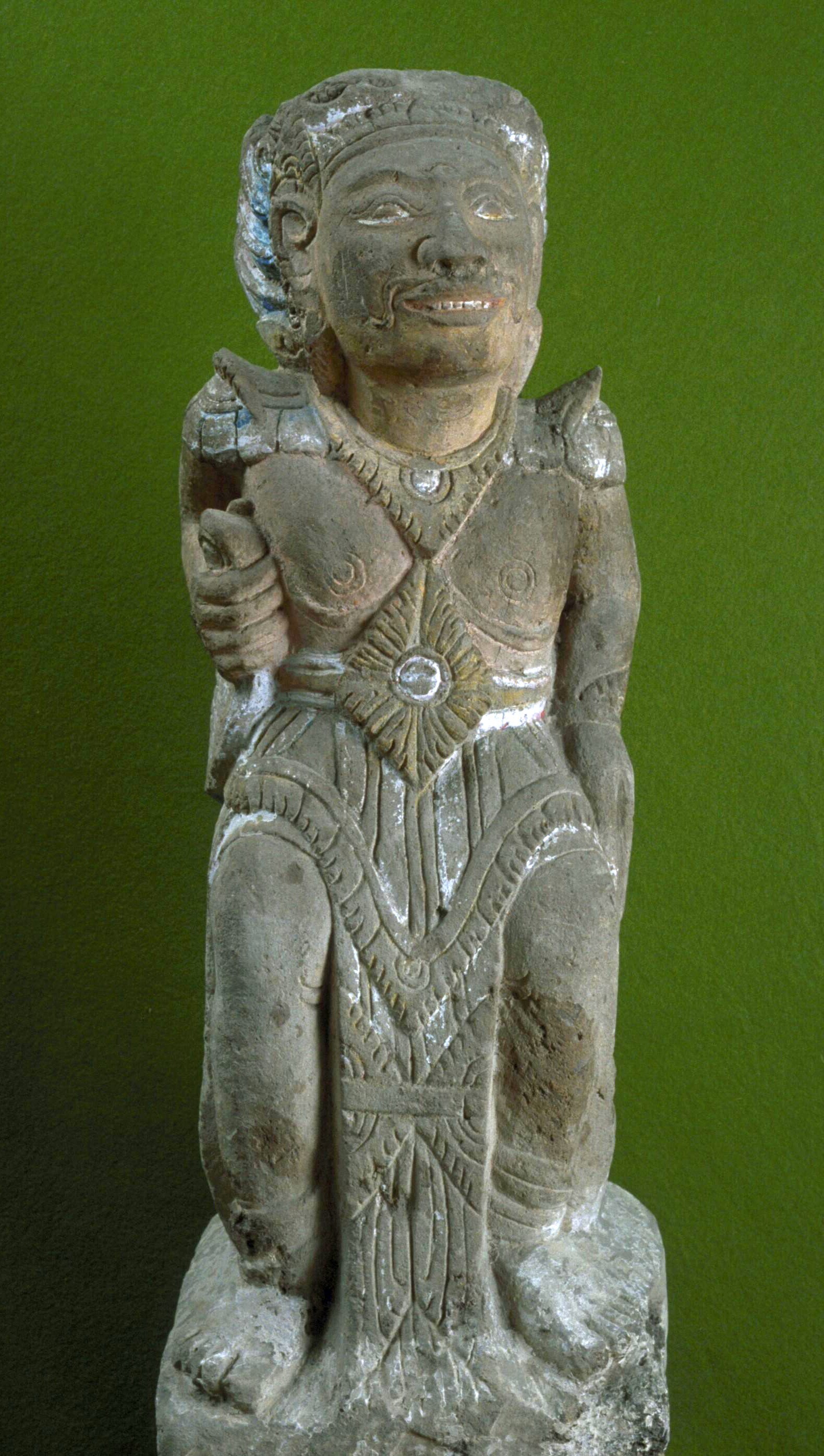 Houten beeld voorstellende Vishnu met bijbehorende k...