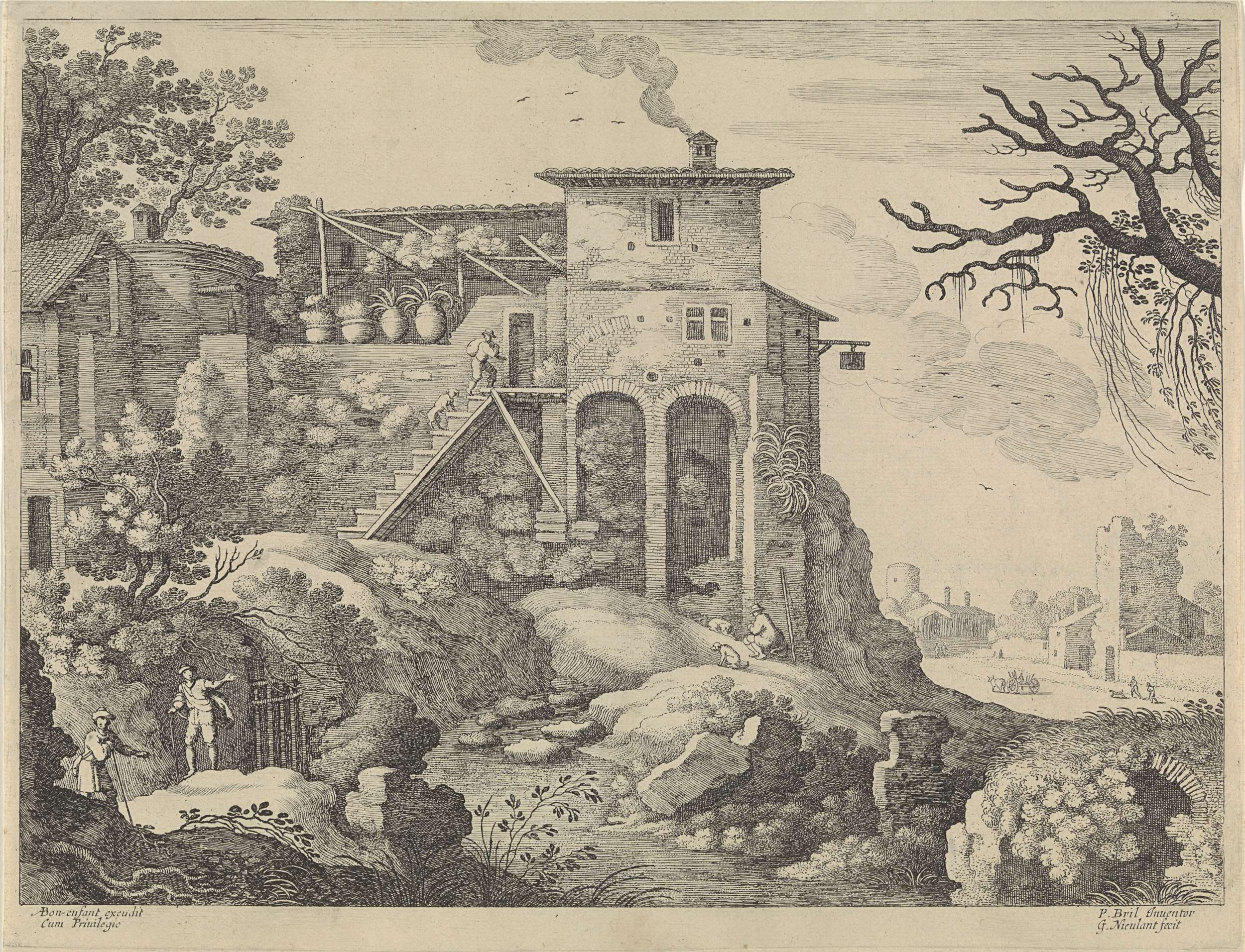 Italiaans landschap met een herberg