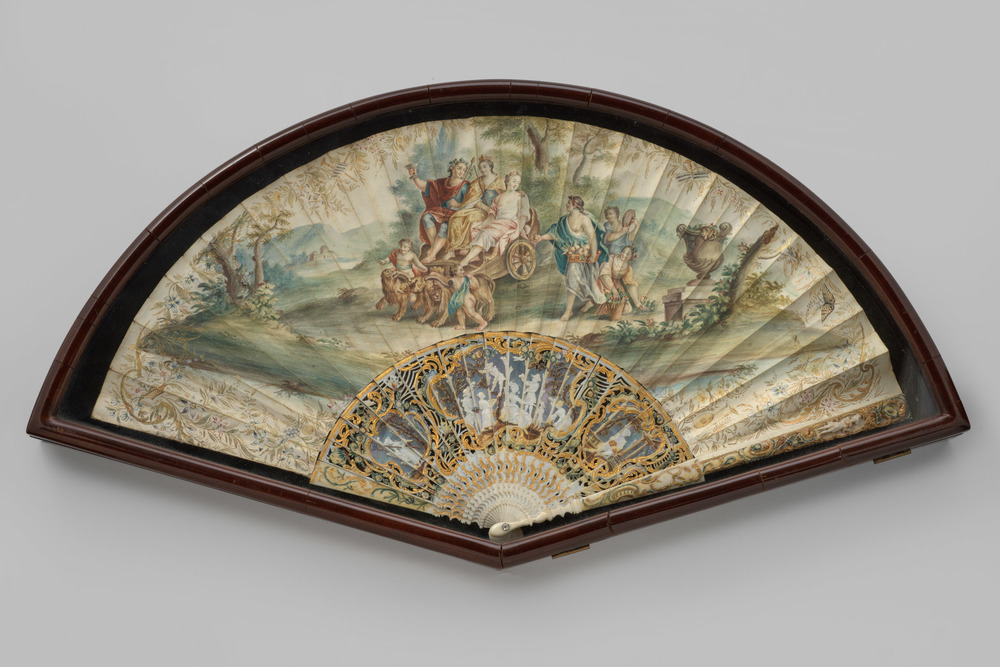 Ingelijste vouwwaaier met een allegorische voorstelling