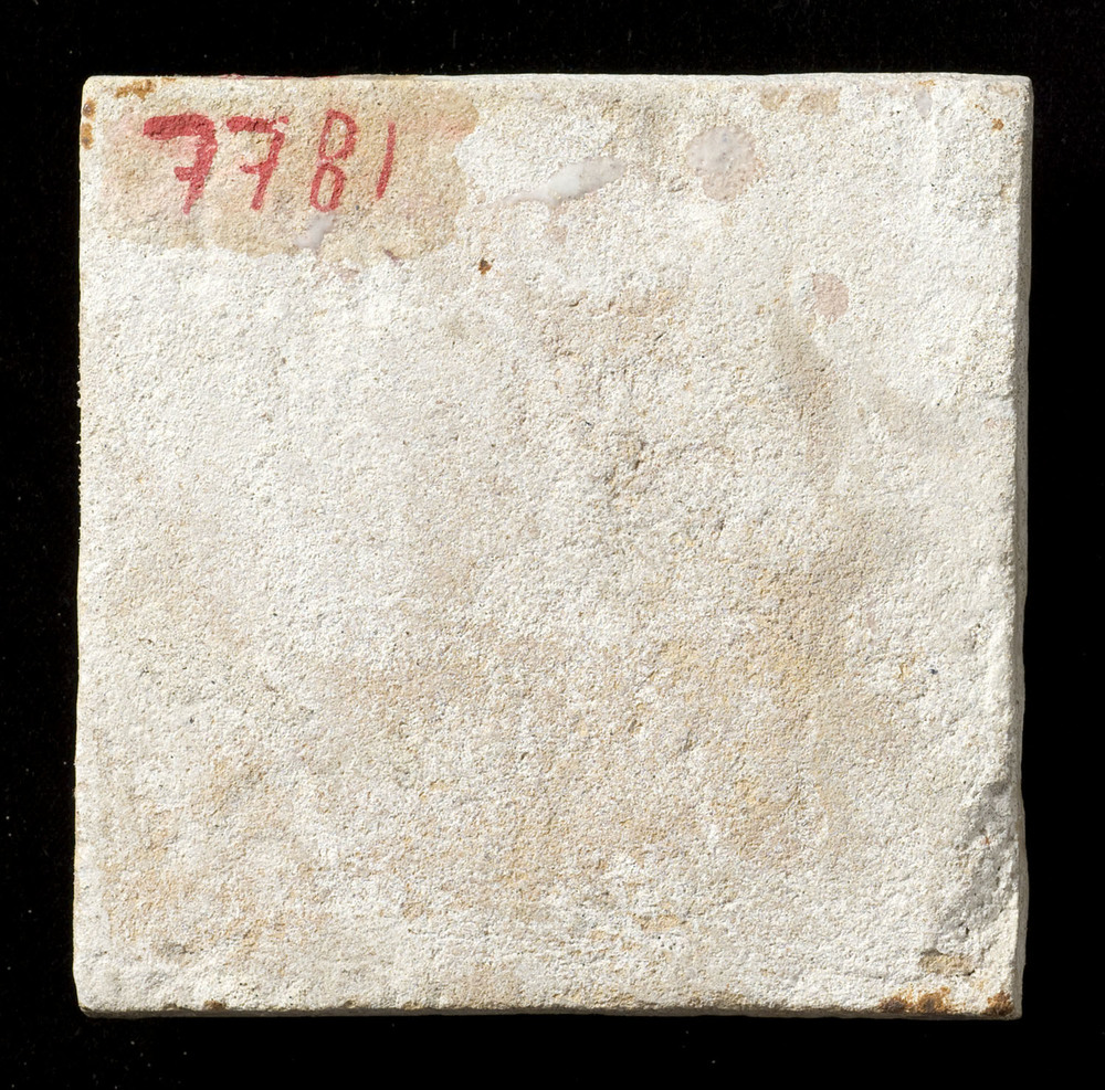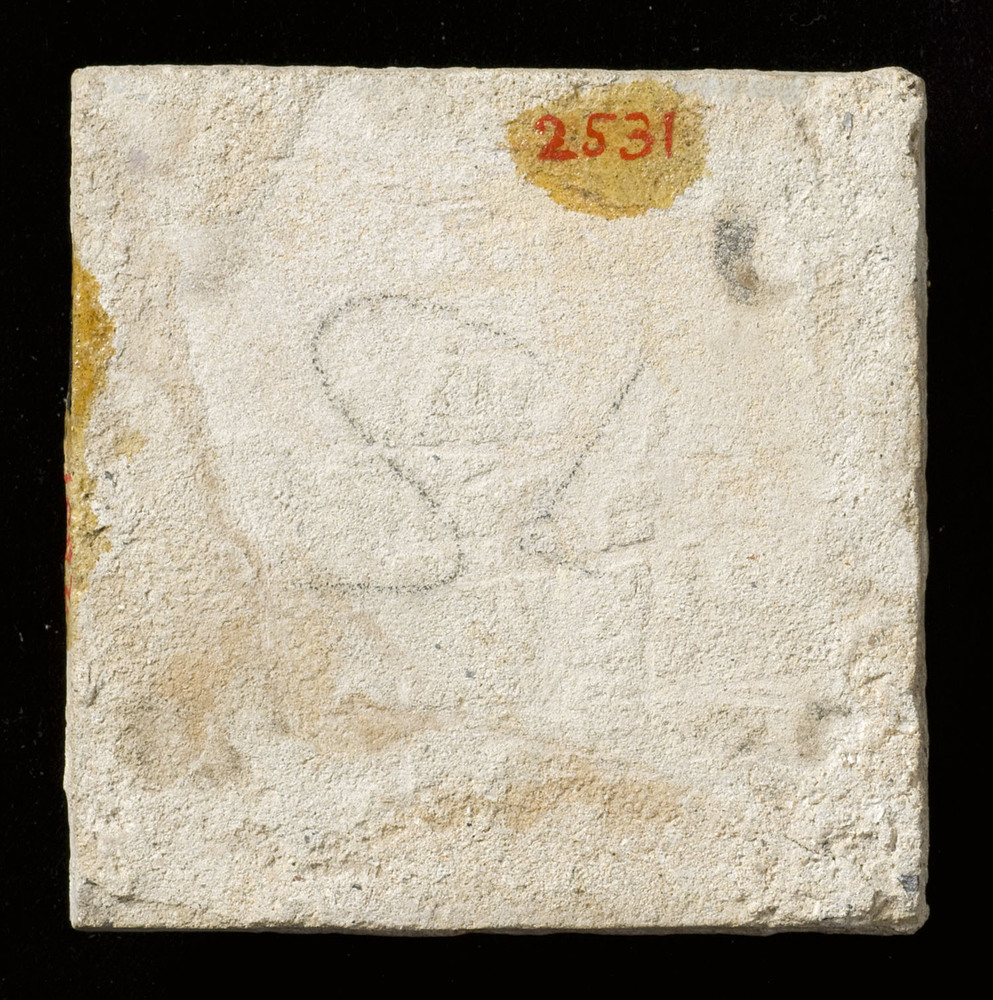 Vloertegel van keramiek, inleg- en slibtechniek, gem...