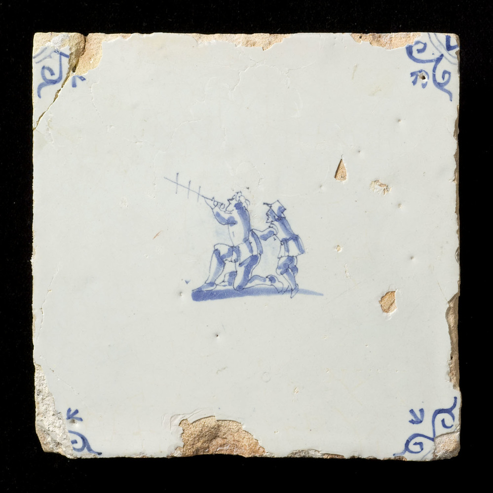 Tegel van aardewerk met tinglazuur voorstellende een...