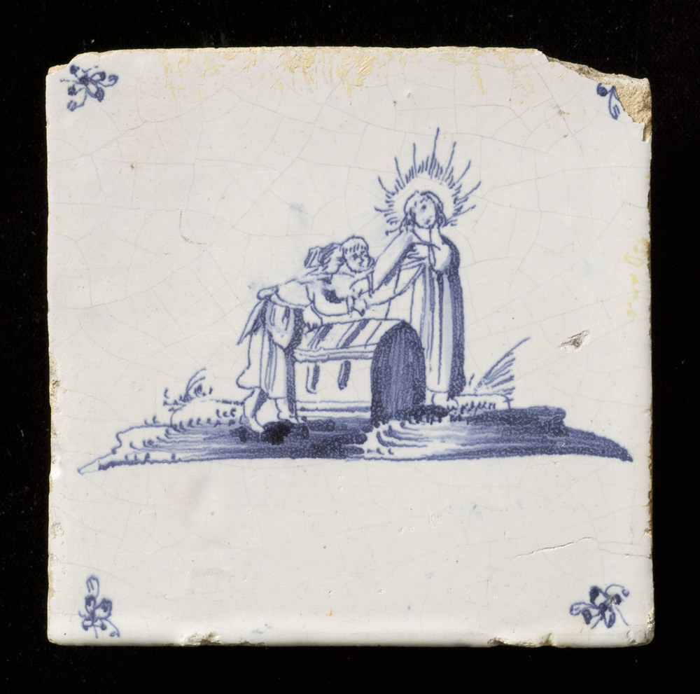tegel van keramiek met tinglazuur, voorstellende: Ab...