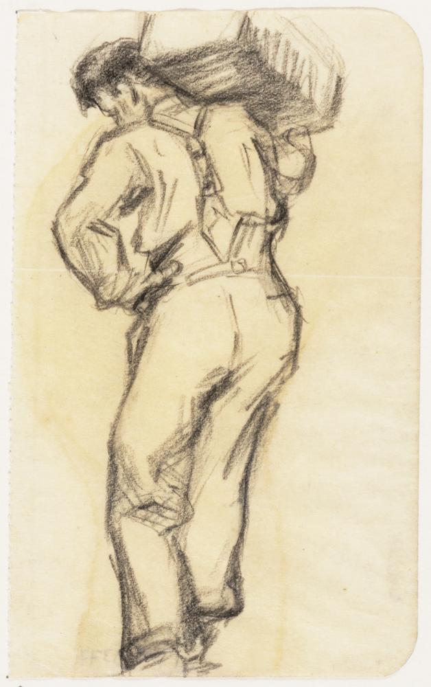 Man met pak op schouder