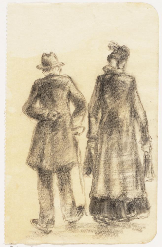 Man en voruw aan de wandel