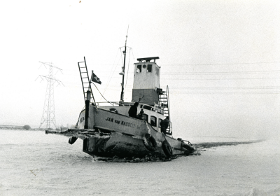 Binnenvaartschip op bevroren water, vermoedelijk het...