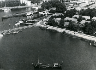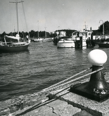 Schepen in de haven van Lelystad-Haven, augustus 1976