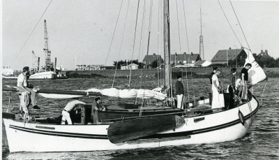 Zeilschip bij Lelystad-Haven, augustus 1976