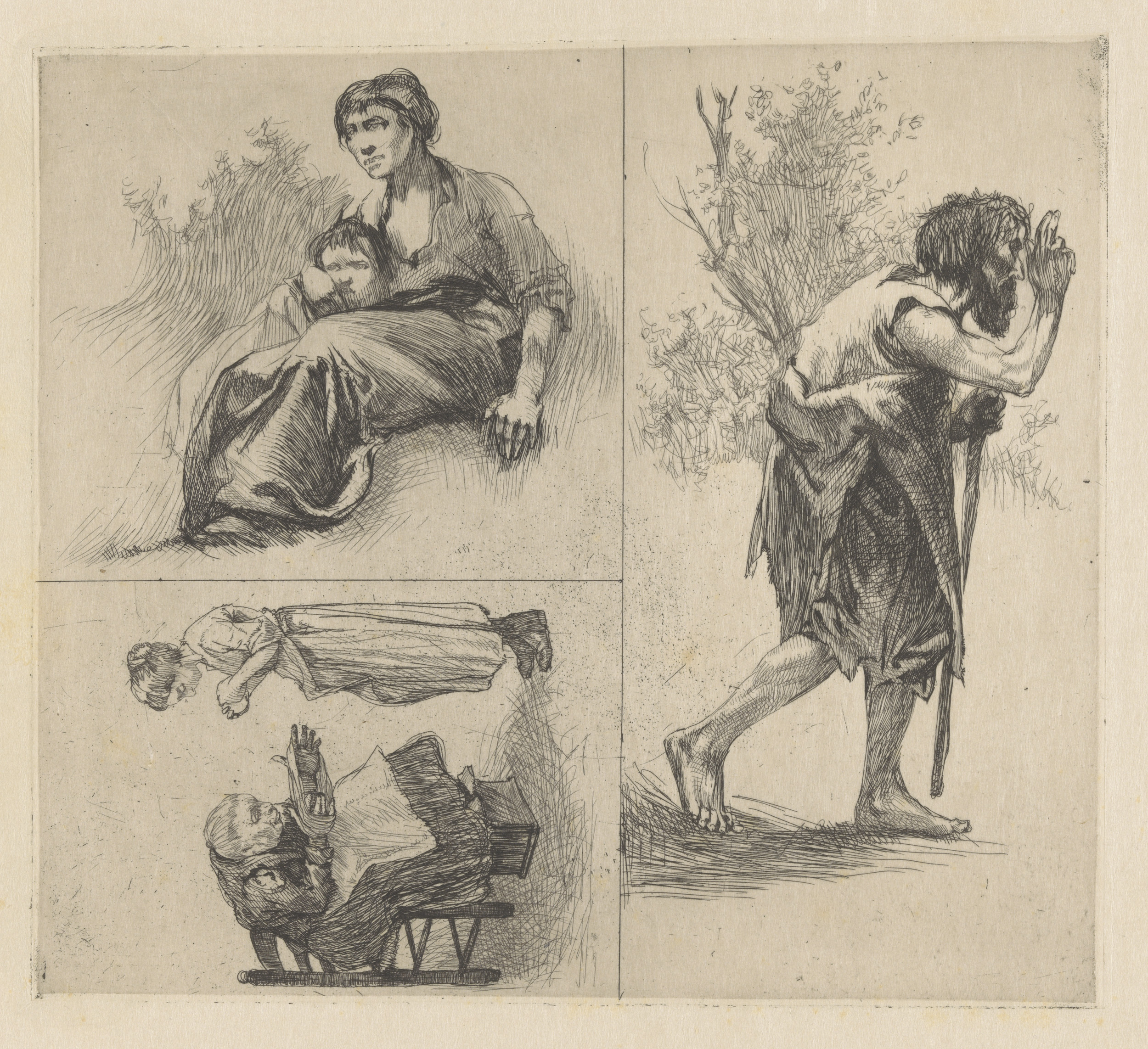 Drie voorstellingen met menselijke figuren