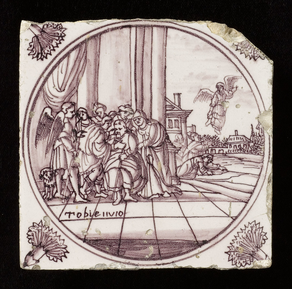 tegel van keramiek met tinglazuur, voorstellende: Ac...