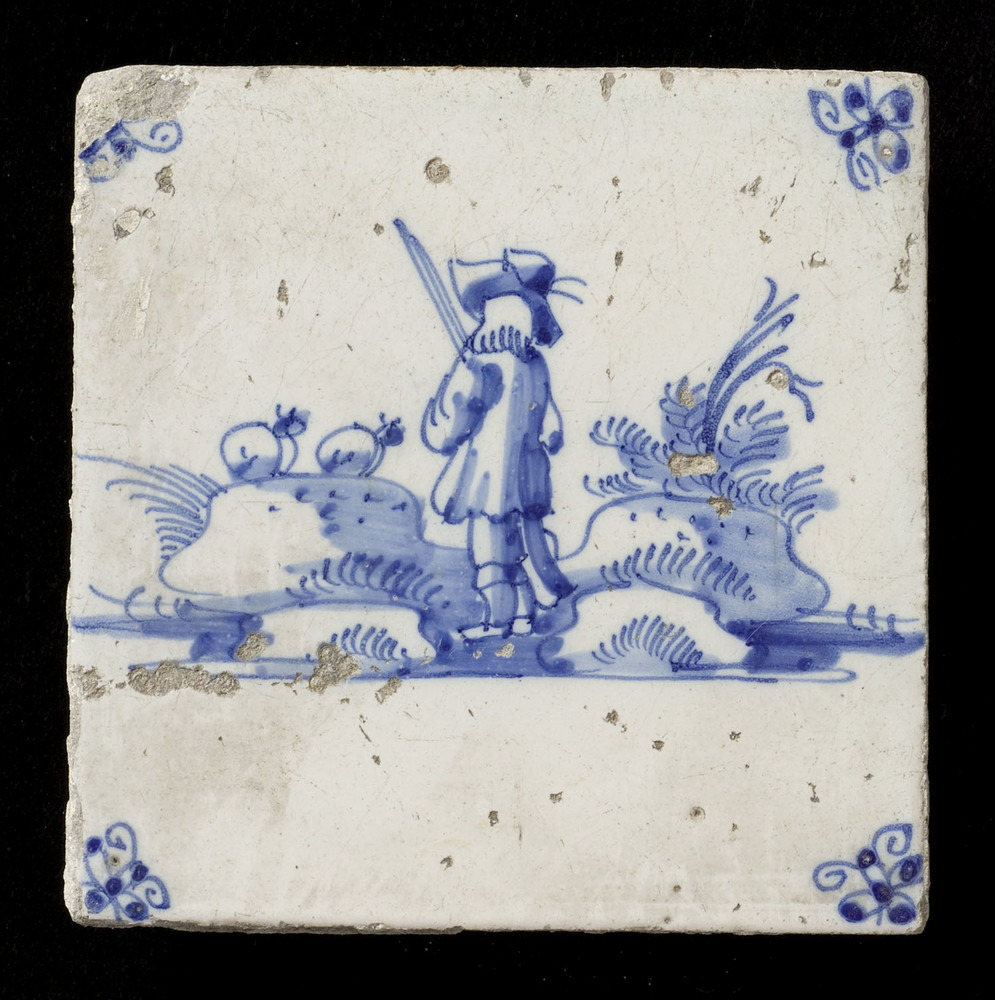Tegel van keramiek, gemaakt in Nederland ca. 1660-1700
