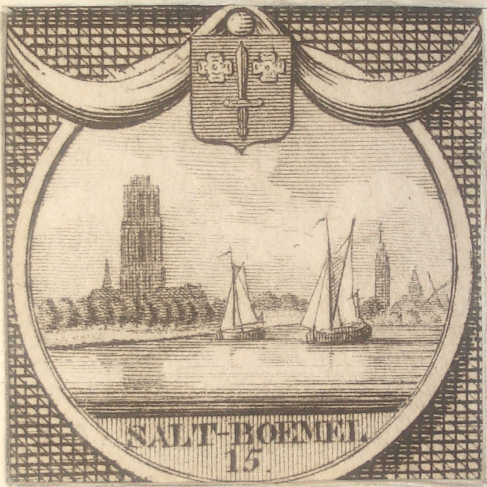 Gezicht op Zaltbommel met wapenschild