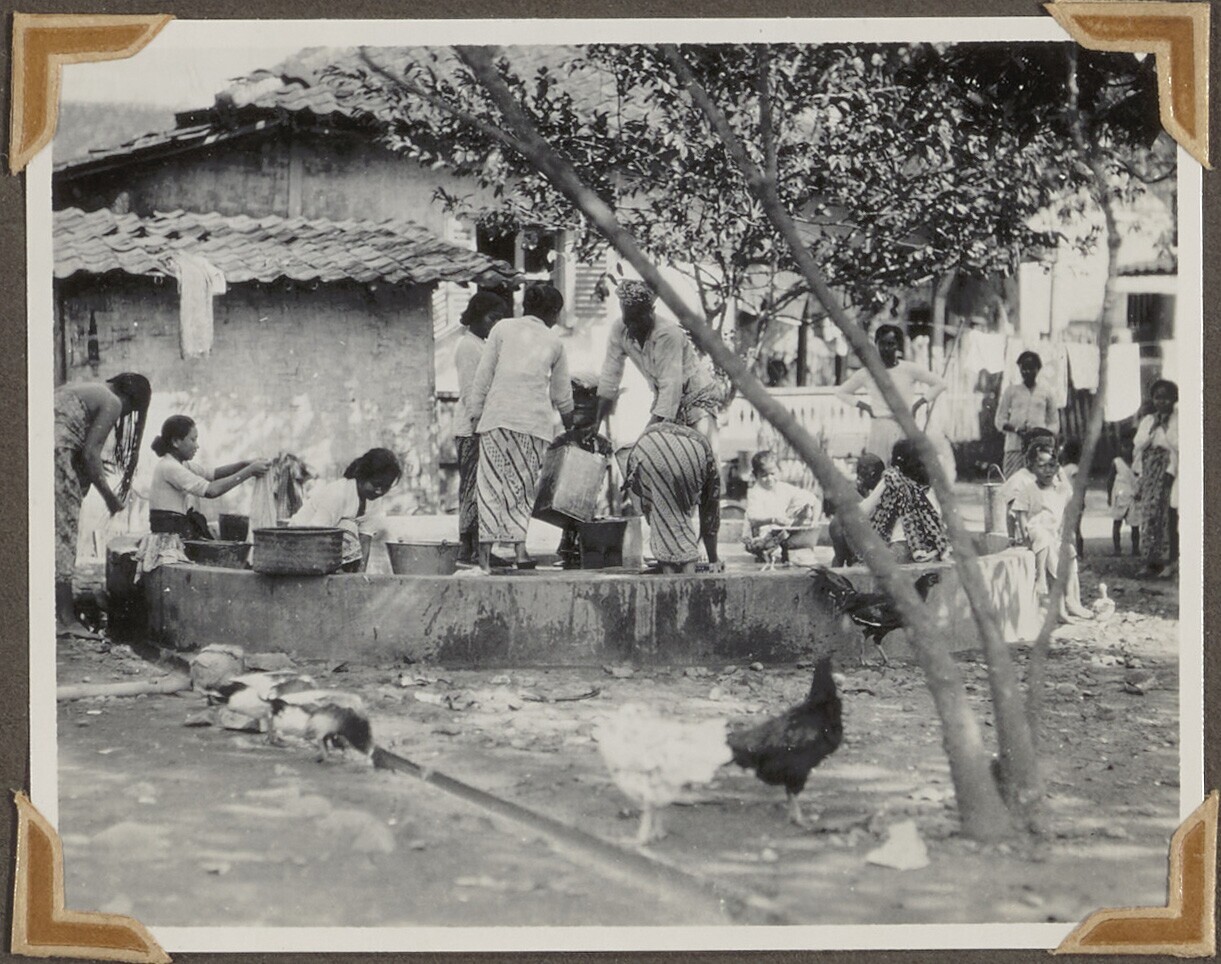 De openbare wasplaats in een kampong, Java.