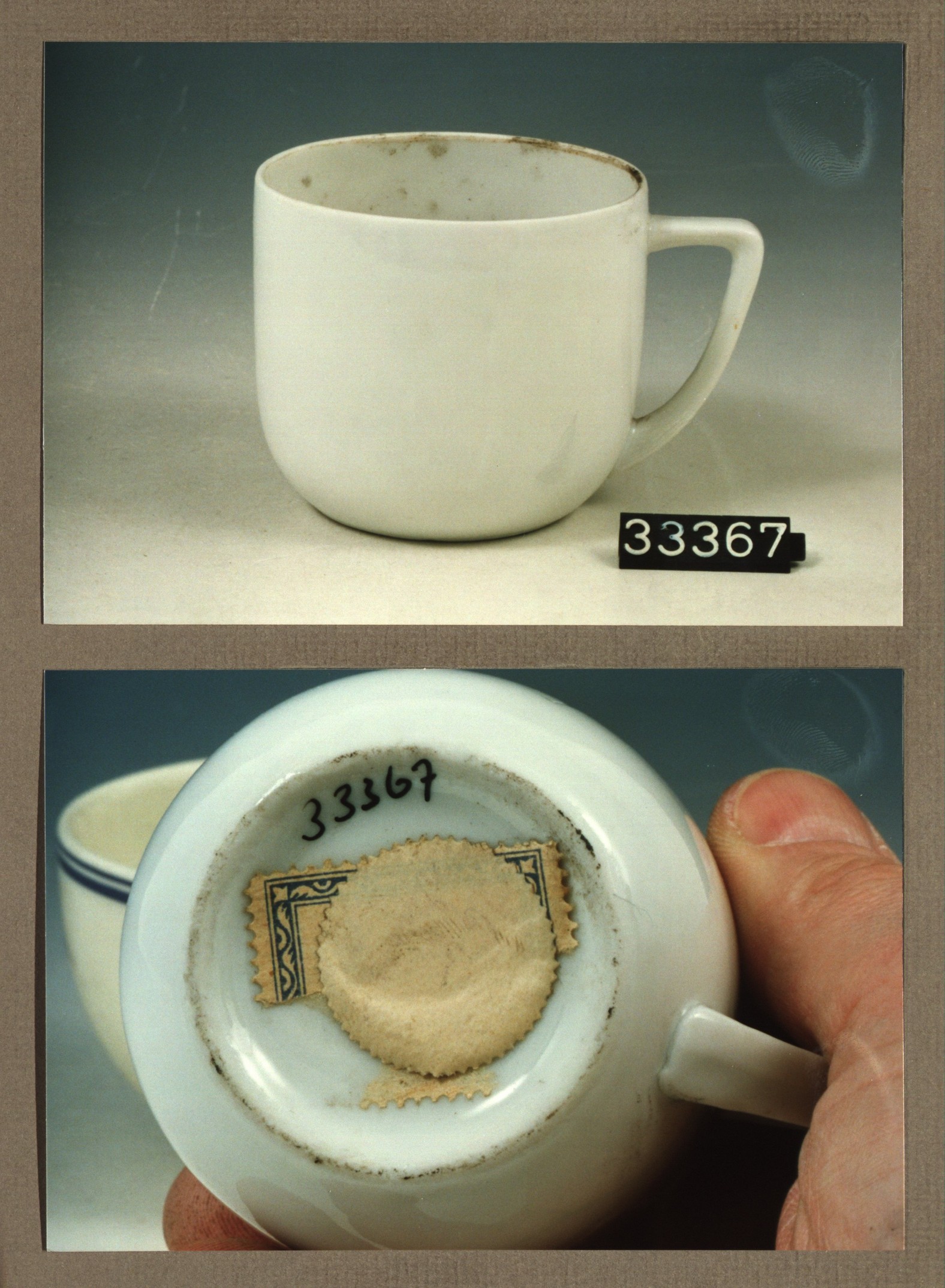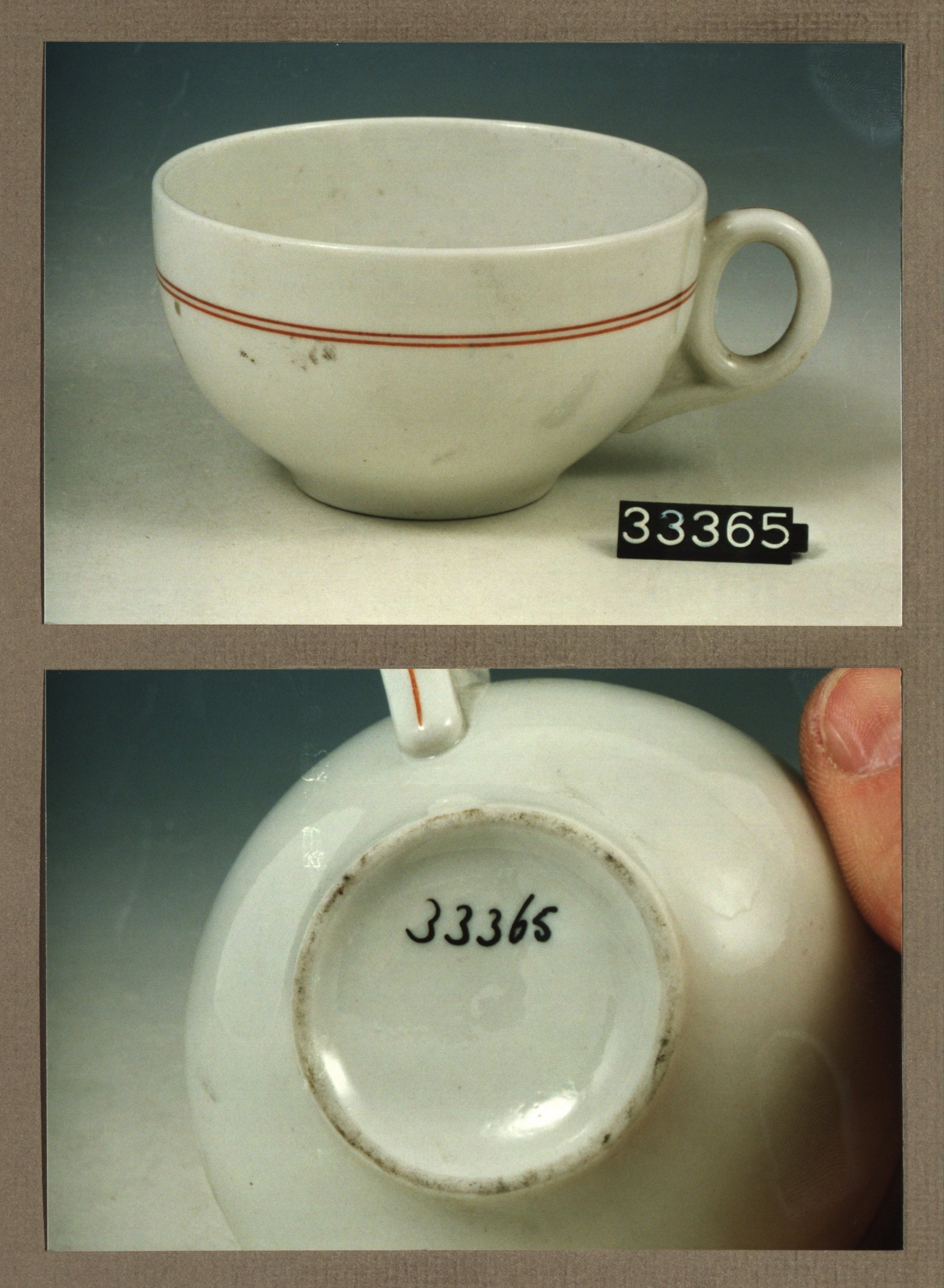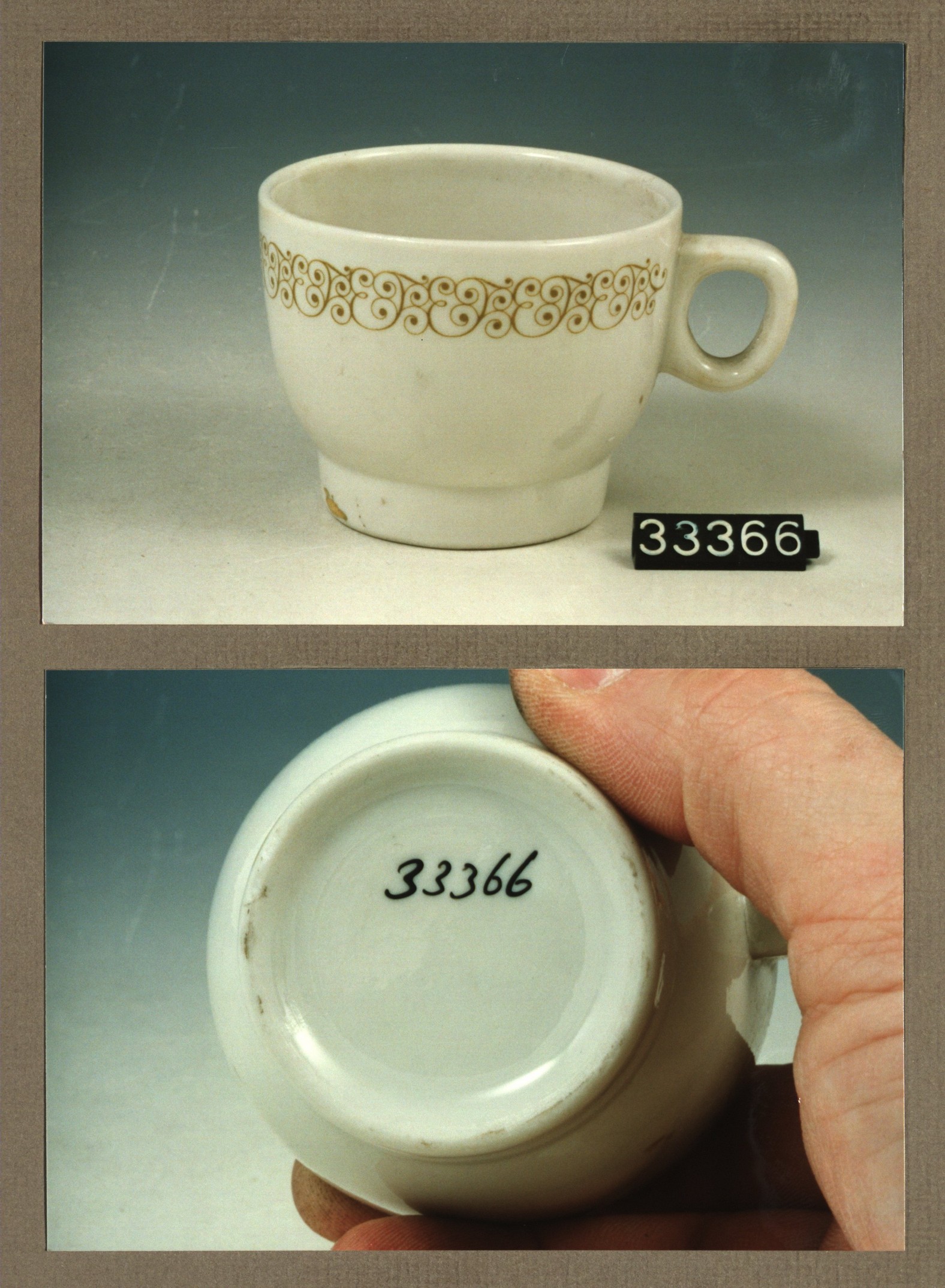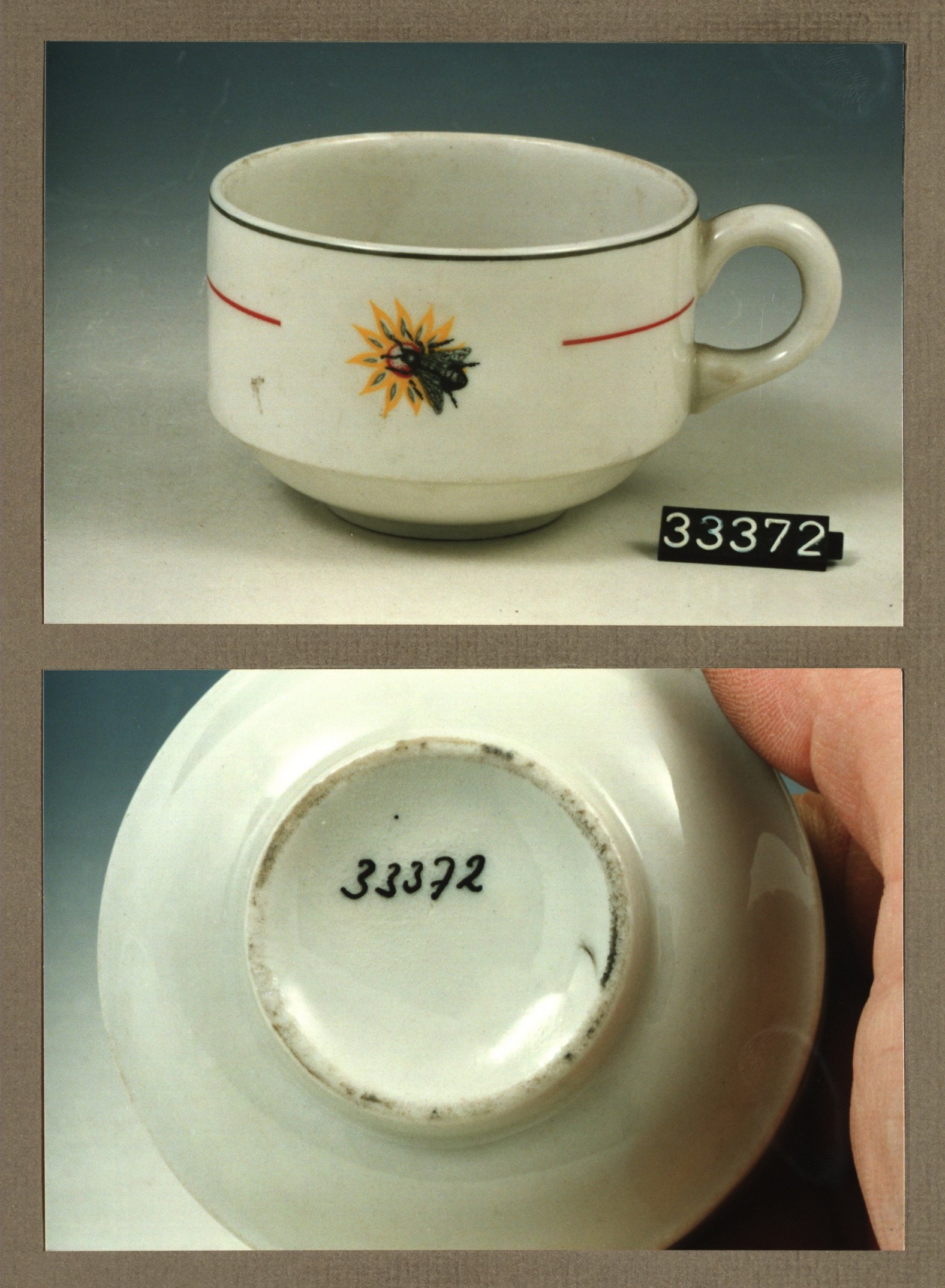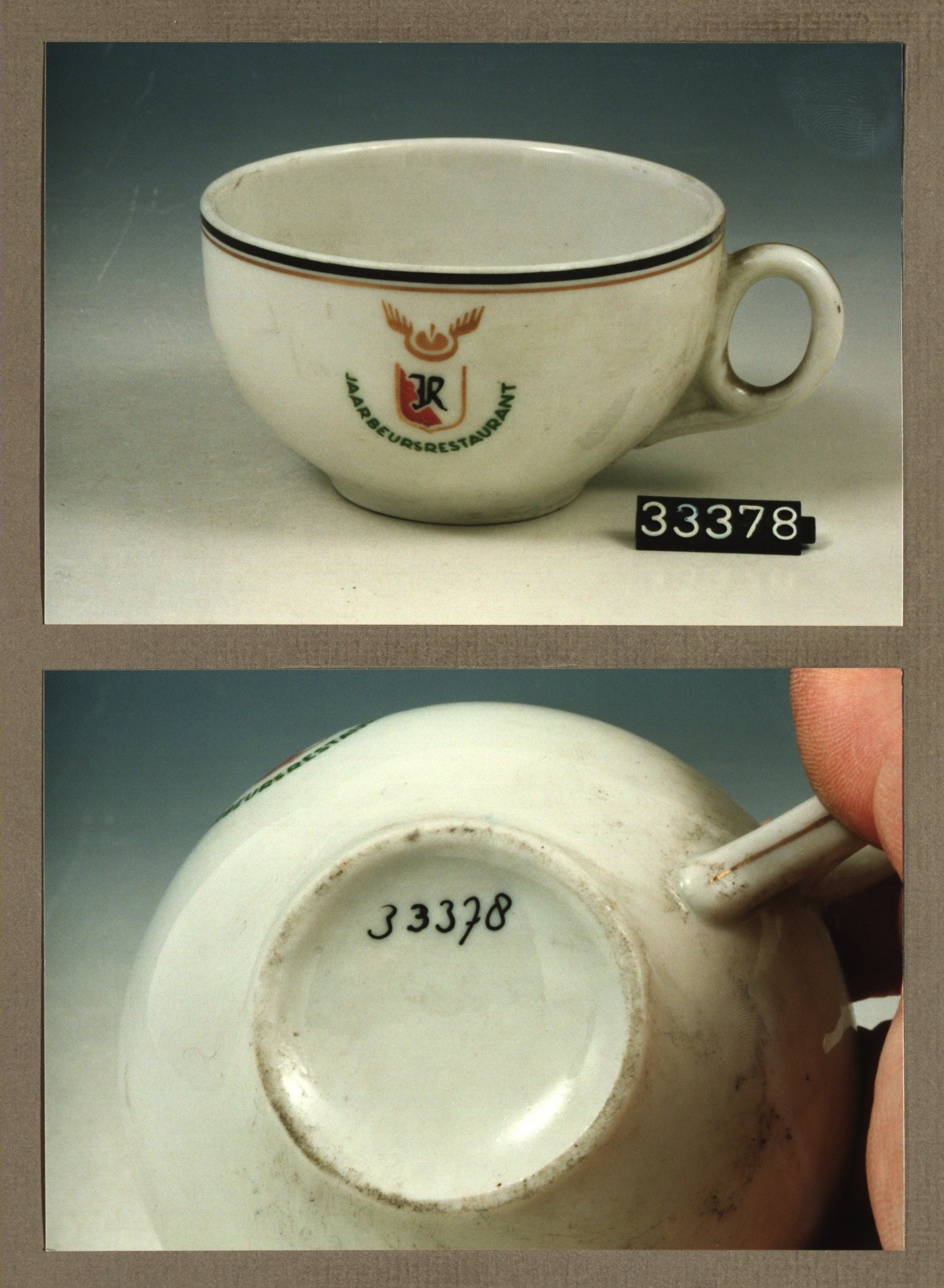 Kop met opschrift, model F met decor Jaarbeursrestau...