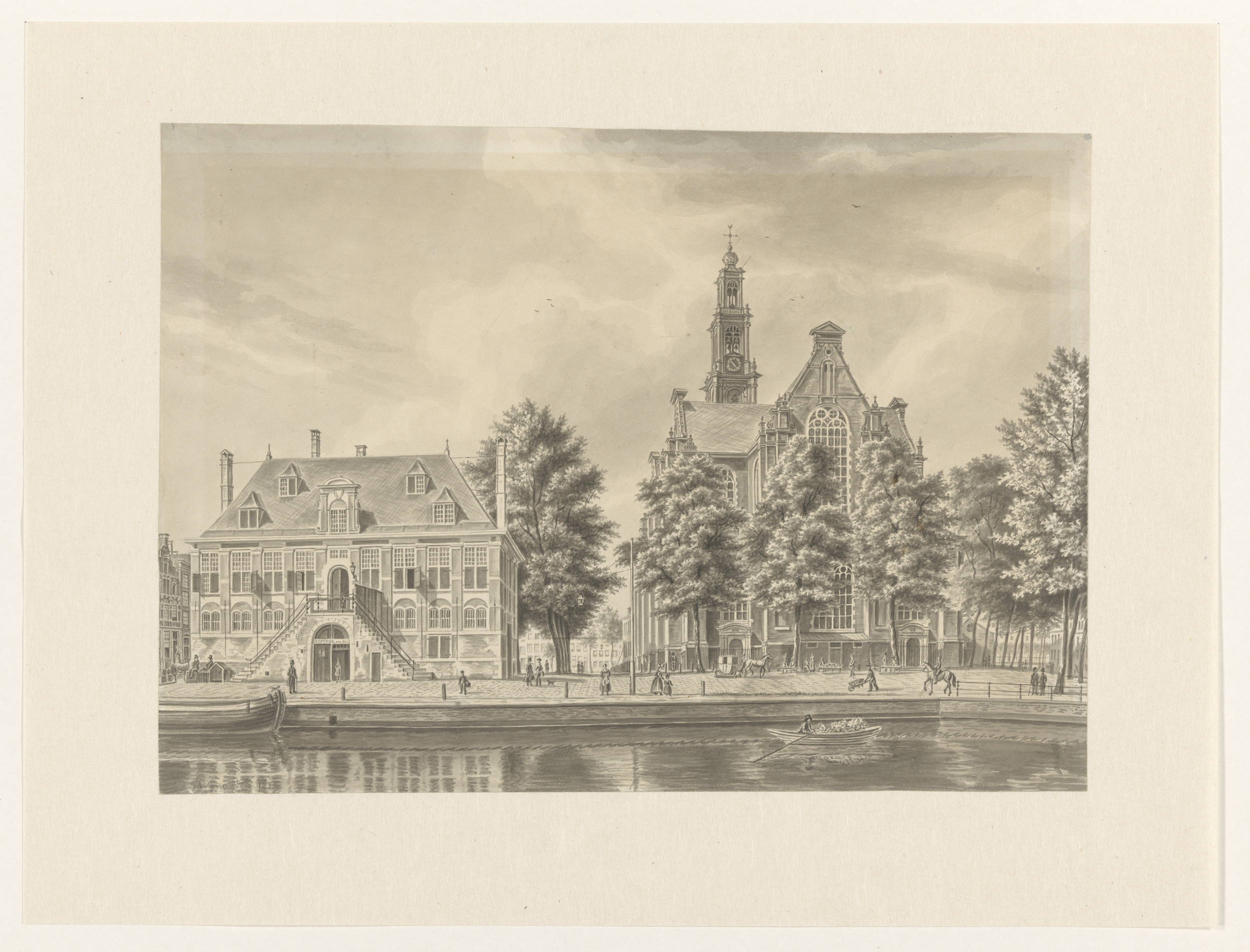 Gezicht op de Westerkerk en de Westerhal te Amsterdam