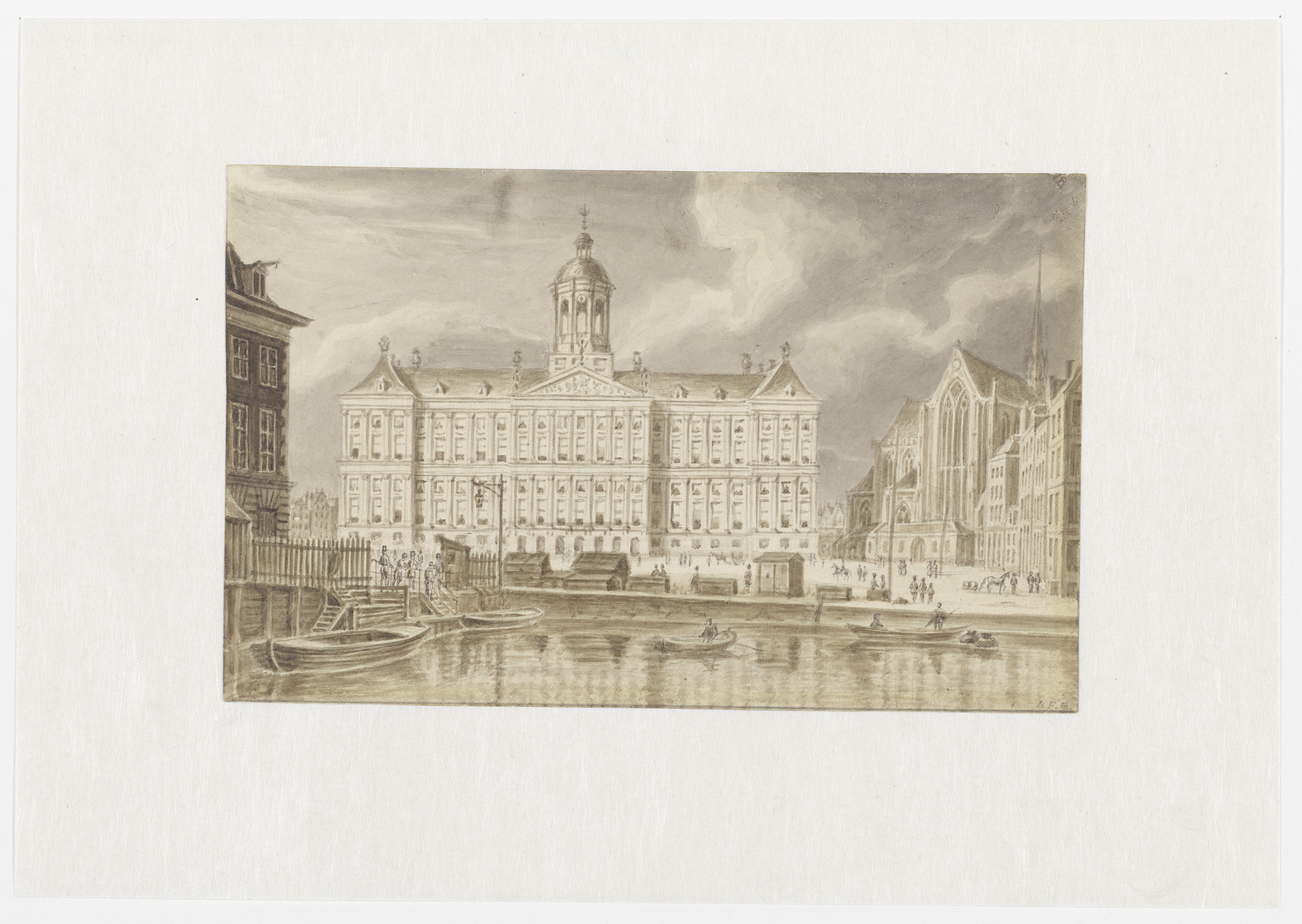 Gezicht op het Koninklijk Paleis en de Nieuwe Kerk o...