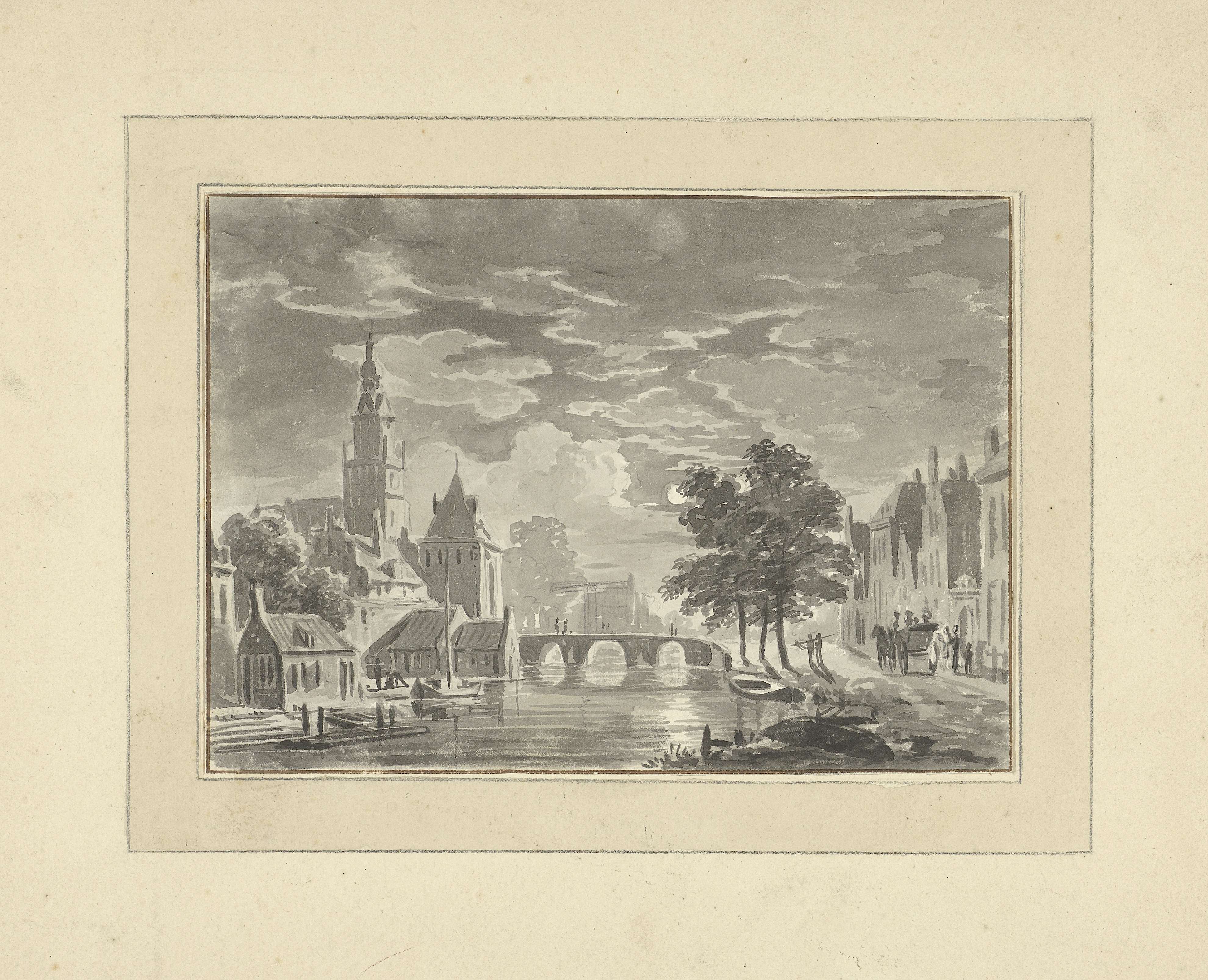 Stadsgezicht bij maanlicht