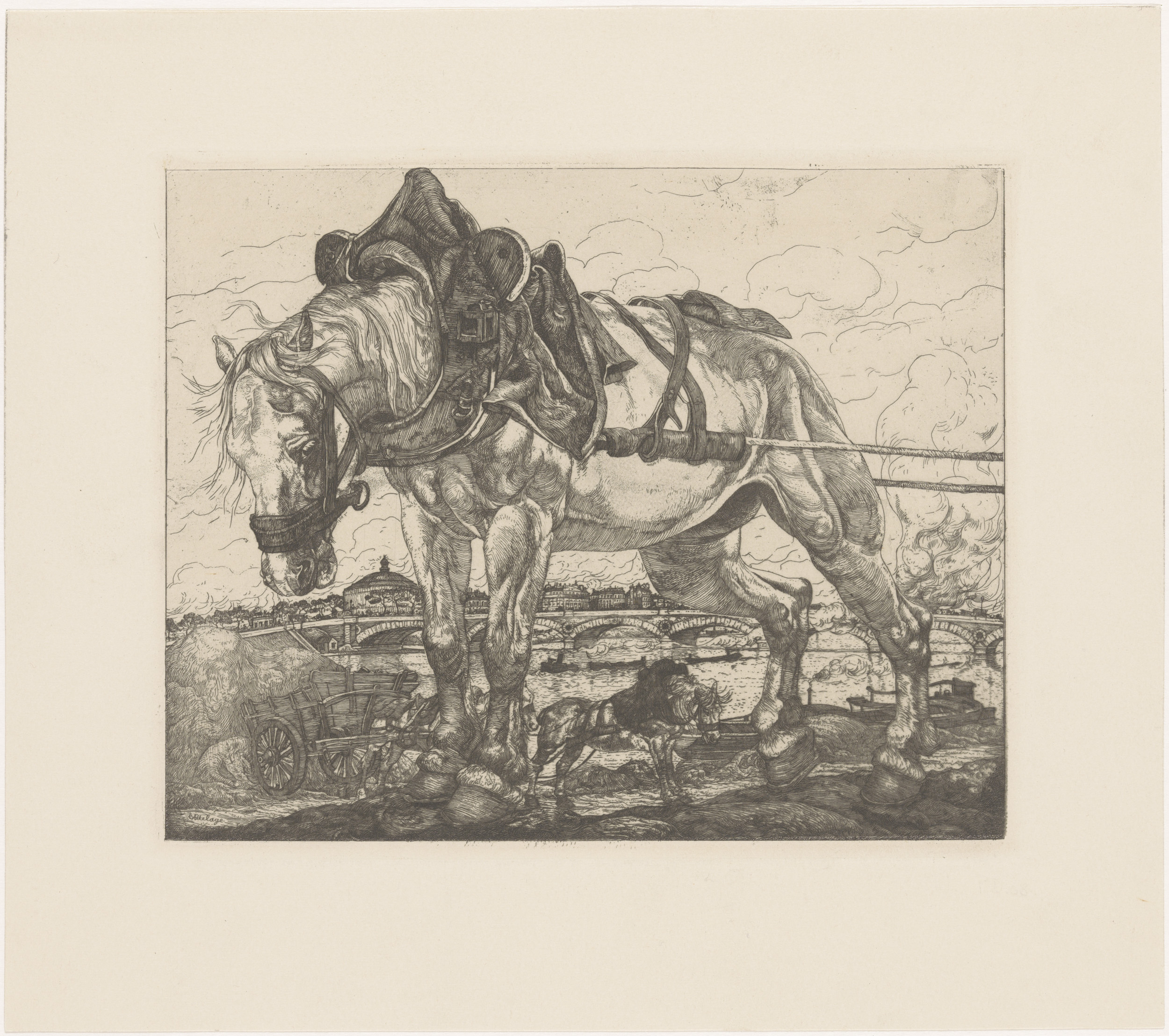 Trekpaard bij de Seine in Parijs