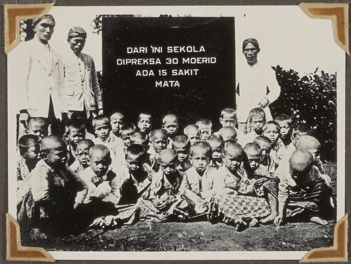 Groep schoolkinderen met oogziekten.